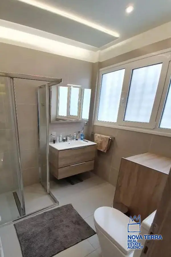 Ένα καλαίσθητο και καλόγουστα επιπλωμένο, κομψό διαμέρισμα 2ου ορόφου, το οποίο έχει επιπλέον χώρο διαβίωσης 38,4μ2 με τη μορφή μπαλκόνι-βεράντα(διαστάσεις μήκους 9,6μ και πλάτους 4μ). Τόσο τα υπνοδωμάτια όσο και το σαλόνι έχουν συρόμενες πόρτες που οδηγούν απευθείας στο μπαλκόνι-βεράντα. Πρόσφατα ανακαινίστηκε σε υψηλές προδιαγραφές. Αυτό το διαμέρισμα θα ταιριάζει σε μια νεαρή οικογένεια καθώς δεν έχει ασανσέρ, σε ένα στέλεχος ή ειδικότερα σε άτομα που αναζητούν ποιοτικό τρόπο ζωής στη Ριβιέρα Αθηνών. Διαθέτει ηλεκτρικές τέντες και περσίδες. Και βρίσκεται σε μικρή απόσταση με τα πόδια από όλες τις τοπικές παραλίες και την κεντρική πλατεία της Βουλιαγμένης κ.λπ. Το διαμέρισμα προσφέρει υπέροχη θέα στη θάλασσα από το μπαλκόνι-βεράντα. Διαθέσιμο από τον Νοέμβρη.
