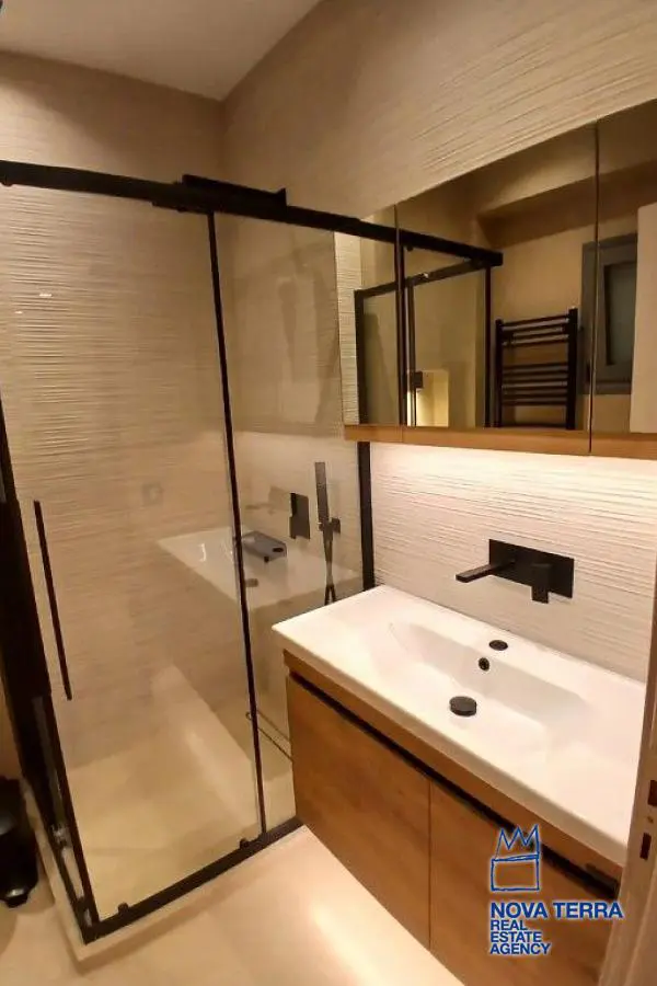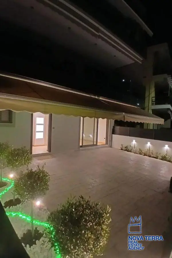 Αυτονομο διαμέρισμα 48 τμ στο Ελληνικό πλησίον του μετρό με πάρκινγκ και αποκλειστική χρήση κήπου. Πολυτελής κατασκευή σε οικιστική περιοχή. Αποτελείται από κρεβατοκαμαρα, μπανιο, χωλ και ενιαίο χώρο σαλόνι και κουζίνας. Κρεβατοκαμαρα με σίτα, ηλεκτρικο ρόλο, φωτισμός ντουλάπας με το άνοιγμα και διακοπτες στα πλαϊνά του κρεβατιού με 3 φωτισμούς και θύρες usb για φορτιση. Το μπανιο με εντοιχισμενα είδη υγιεινής,καμπινα ντουζ και κρυφούς φωτισμούς. Στο χωλ βρίσκεται μια κατασκευή ραφιών με φωτισμο. Το σαλόνι πολύ φωτεινό λόγω του μεγάλου ανοίγματος του κουφώματος μάρκας elvial με λεπτό γάντζο και σφραγιση με σύστημα ανασηκωσης όπως επίσης με σιτα και ηλεκτρικό ρολο. Φωτισμός με σποτ και led ταινίες όλα με dimmer. Κουζινα με εντοιχιζομενα ηλεκτρικά(εκτός ψυγείου), με φωτισμο σε gola, στα ντουλαπια και σποτ στην οροφή. Κηπος 50 τμ με αποκλειστική χρήση με αυτόματο ποτισμα και φωτισμο. Αυτόνομη θέρμανση με φυσικό αέριο. Κλιματιστικα σε κρεβατοκαμαρα και σαλονι με Ιονιστή και Wi-Fi. Συναγερμος με δυνατότητα σύνδεσης στο κινητό. Θυροτηλεοραση με μπρελοκ scaner, κωδικό εισόδου και wifi για απομακρυσμενη επικοινωνία. Ηλεκτρικες τεντες. Πόρτα ασφαλείας.