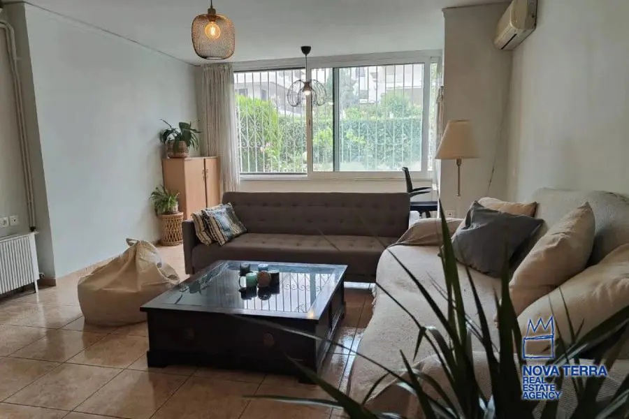 Ηλιόλουστο Ισόγειο διαμέρισμα, με κήπο περιμετρικά του διαμερίσματος. Βρίσκεται σε ήσυχη περιοχή. Ωφέλιμος χώρος 105 τμ. Το διαμέρισμα έχει 2 υπνοδωμάτια, καθιστικό, κουζίνα, μπάνιο. Επίσης, διαθέτει μεγάλη ηλιόλουστη κουζίνα με καθιστικό, τραπεζαρία και με πολλούς αποθηκευτικούς χώρους. Το διαμέρισμα διαθέτει κλιματιστικά, καινούργια θυροτηλεόραση, διπλά τζάμια, σίτες για τα κουνούπια, μεγάλες ντουλάπες, παντζούρια και πόρτα ασφαλείας.