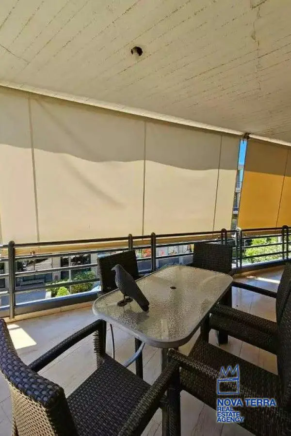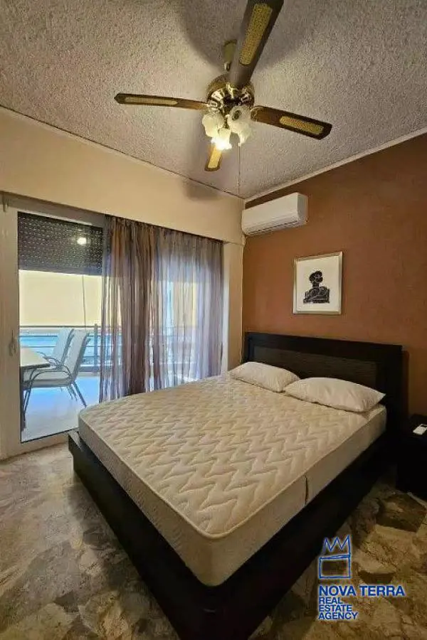 100 μετρα απο τη θαλασσα, διπλα απο σκλαβενιτη. θεα θαλασσα Με ανεμπόδιστη θέα στη θάλασσα τόσο από την βεράντα όσο και από μέσα από το σαλόνι, είναι μόλις 70 μέτρα από την παραλία, Κατασκευής 1978. Αποτελείται από 1 υπνοδωμάτιο (με δυνατότητα δημιουργίας ακόμα ενός υπνοδωματίου), σαλόνι, κουζίνα, μπάνιο, περιμετρική βεράντα με καινούργιες τέντες και ανοιχτή θέση πάρκιν, διαθέτει ασανσέρ, κλιματισμό (2 μονάδες), πόρτα ασφαλείας, συναγερμό, νυχτερινό ρεύμα, καινούρια κουφώματα αλουμινίου με διπλά τζάμια και σίτες, κοινόχρηστο κήπο, και δάπεδο από μάρμαρο και πλακάκι