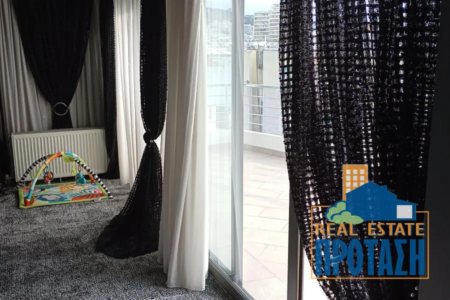 Πρόκειται για ένα εξαιρετικό ακίνητο που σχεδιάστηκε με γνώμονα την βιωσιμότητα την υψηλή αισθητική και λειτουργικότητα προσφέροντας στους κατοίκους άνεση και ποιότητα. Το διαμέρισμα πωλείται πλήρως επιπλωμένο με minimal αισθητική και με εντοιχιζόμενες ηλεκτρικές συσκευές. Ο κάτω όροφος αποτελείται από σαλόνι, κουζίνα wc και ένα παιδικό δωμάτιο (80 τ.μ.) και μεγάλη γωνιακή βεράντα με απεριόριστη θέα στην Αθήνα. Επάνω όροφος αποτελείται από μια μεγάλη κρεβατοκάμαρα master με home cinema, βεστιάριο και αποκλειστική χρήση ταράτσας (βεράντα). Υπάρχει κλιματιστική μονάδα με εξαερισμό σε όλο το σπίτι, αποθήκη εντός διαμερίσματος και θέση παρκινγκ. Όλα τα υλικά της ανακαίνισης είναι πολύ υψηλής ποιότητας και αντοχής. Πανοραμικά παράθυρα, μπαλκονόπορτες και οροφή εξασφαλίζουν μέγιστη εκμετάλλευση φυσικού φωτισμού. Είναι άμεσα διαθέσιμο και βρίσκεται 300 μ από τον σταθμό τρένου Άνω Πατήσια