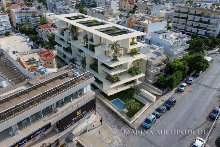 ΓΛΥΦΑΔΑ 'Ανω (λίγο κάτω από την Λ. Γούναρη) σε κτίριο υπό κατασκευή, Μεζονέτα 4ου-5ου (τύπου Loft), 135 τμ. Μεσαίο διαμέρισμα, με Δυτικό - Ανατολικό προσανατολισμό και πισίνα στον εξώστη. - 4ος, 70 τμ, ενιαίος χώρος υποδοχής διπλού ύψους - τραπεζαρία, ενιαία κουζίνα, 1 wc και 2 βεράντες. Στην μεγάλη βεράντα ο εξώστης με την πισίνα (3,5 τμ) - 5ος (Loft), 65 τμ, 3 υ/δ (1 master, με βεράντα με θεά βουνό), 1 επιπλέον μπάνιο, μία επιπλέον βεράντα με θέα θάλασσα. Αποτελεί μέρος σύγχρονου 5όροφου γωνιακού κτιρίου με συνολικά 12 ιδιοκτησίες. Διαθέτει κλιματισμό, ενδοδαπέδια, ενεργειακά τζάμια θερμοδιακοπής, υβριδικά ηλιακά panels για ζεστό νερό, υπόγεια θέση στάθμευσης και αποθήκη. Τιμή ζώνης 2350€. Βρίσκεται πολύ κοντά σε τοπική αγορά, 2,2 χλμ από το μετρό Ελληνικού και τον εμπορικό ιστό της Γλυφάδας, 3 χλμ από την παραλία της Γλυφάδας, 3,5 χλμ από το Μητροπολιτικό Πάρκο Ελληνικού και 26 χλμ από το αεροδρόμιο. Εκτιμώμενη παράδοση Δεκέμβριο του έτους 2026.
