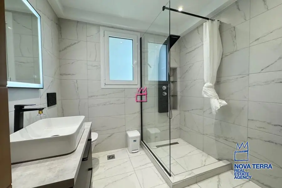 ΓΛΥΦΑΔΑ - ΚΕΝΤΡΟ, Διαμπερές διαμέρισμα 3ου ορόφου σε πολυκατοικια με ασανσέρ και μεγάλο κήπο. Δύο υπνοδωμάτια, το ένα ensuite, δεύτερο μπάνιο μεγάλο σαλόνι με κουζίνα και μεγάλα μπαλκόνια. Ανεμπόδιστη θέα θάλασσα, απέναντι από την πλαζ της Γλυφάδας. Πλήρως ανακαινισμένο με air condition σε όλα τα δωμάτια. Κατάλληλο και για επαγγελματική στέγη. : Ενεργειακή κλάση: B. κωδικός ακινήτου: 48921, www.nova-terra.gr