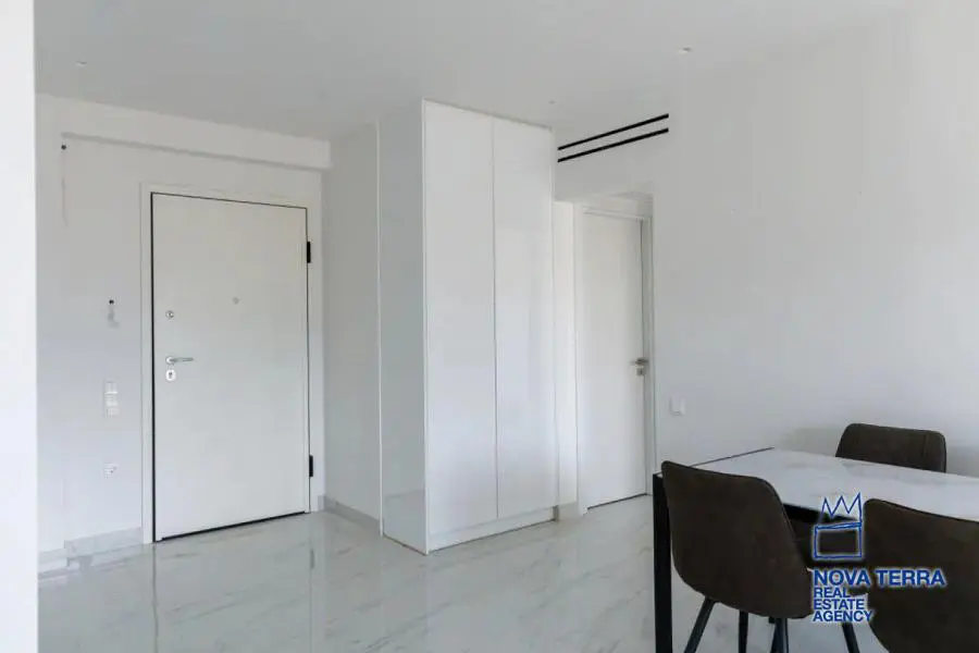 Πωλείται νεόδμητο διαμέρισμα 51 τ.μ., κατασκευής 2024, σύγχρονο, μοντέρνας αισθητικής και λειτουργικής διαρρύθμισης. Το ακίνητο είναι ευρύχωρο και εξαιρετικά φωτεινό, με άνετους χώρους, ενώ ο αγοραστής θα είναι ο πρώτος που θα το κατοικήσει, καθώς δεν έχει χρησιμοποιηθεί ποτέ. Αποτελείται από 1 υπνοδωμάτιο, ενιαίο χώρο σαλονιού – κουζίνας, μπάνιο και μεγάλο μπαλκόνι, κατάλληλο για χαλάρωση ή εξωτερικό καθιστικό. Βρίσκεται στον 5ο όροφο και διαθέτει ανεμπόδιστη θέα, προσφέροντας αίσθηση ανοιχτού ορίζοντα και άνεσης. Το διαμέρισμα έχει έξυπνη διαρρύθμιση, με αποτέλεσμα να διαθέτει φυσικό φωτισμό καθ’ όλη τη διάρκεια της ημέρας σε όλους τους χώρους. Διαθέτει λαμπερό, ολοκαίνουργιο μαρμάρινο πάτωμα, που αναδεικνύει την πολυτέλεια και τη φινέτσα του χώρου και πόρτες ασφαλείας για αυξημένη προστασία.