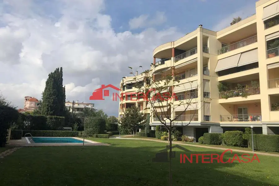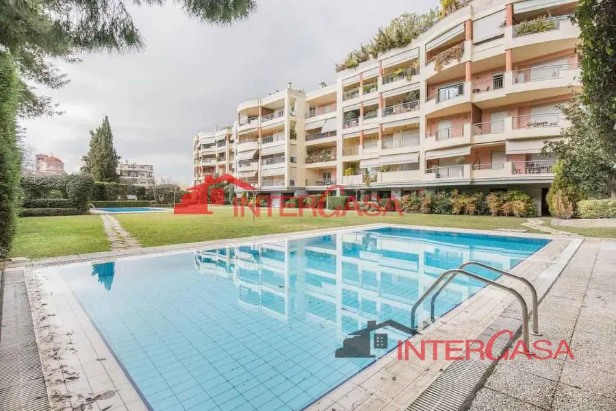Διαμέρισμα 120τμ σε μοντέρνο συγκρότημα κατοικιών στη Νέα Φιλοθέη Αμαρουσίου, σε οικόπεδο 9,400τμ. σε προνομιακό σημείο με πρόσβαση σε τρεις δρόμους, 2ου ορόφου, με καθιστικό, τζάκι, μεγάλες βεράντες, ανεξάρτητη κουζίνα, 3 υπνοδωμάτια (το ένα μάστερ), 2 μπάνια, WC, και έχει αποθήκη και μία υπόγεια θέση στάθμευσης. Οι κοινόχρηστες εγκαταστάσεις συμπεριλαμβάνουν καταπράσινο περιβάλλοντα χώρο, 3 πισίνες, γυμναστήριο, αίθουσα εκδηλώσεων, παιδότοπο και τεράστιο υπόγειο γκαράζ.
