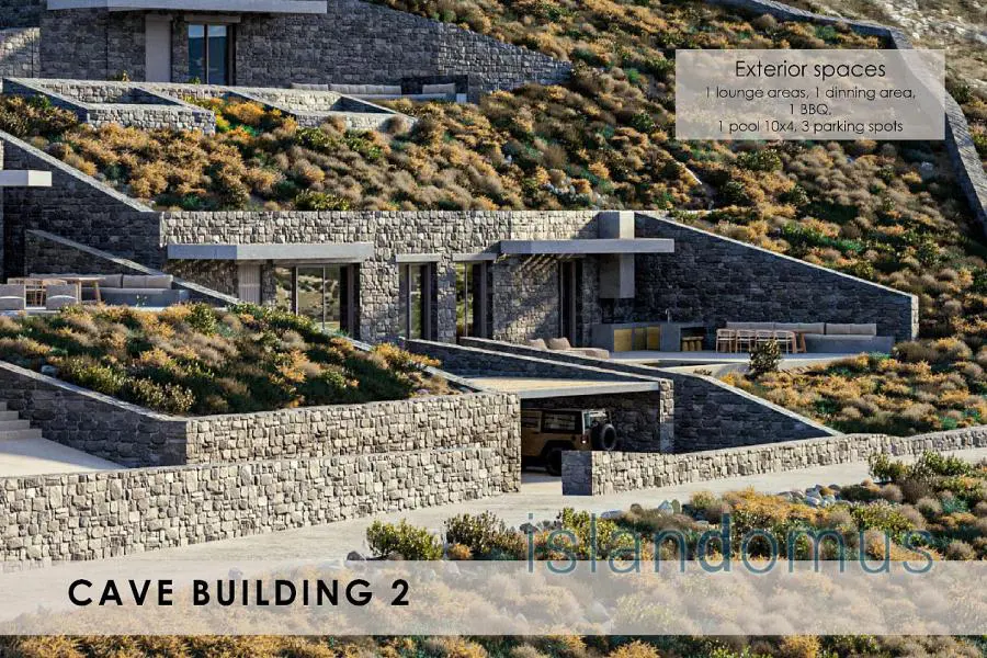 Like an eagle’s nest, this beautiful land parcel stand on the hills above the traditional and calm village of Kostos. Its surface is 6885sq.m. and it has a recent construction permit for three cave villas with a total area of 749sq.m. The houses are set in conversation with the unspoiled natural landscape, the spectacular dry-stone walls and the astonishing terraces of the island. The buildings have been designed as subterranean, offering spectacular unobstructed views of the mountains, the sea and the distant islands. The location is very privileged, close to Kostos and Lefkes and with easy access to Parikia and Naoussa. It can be an opportunity to slow down your rhythms, appreciate the natural beauty of the surrounding landscape and enjoy a way of life that nourishes your mind, body and soul.