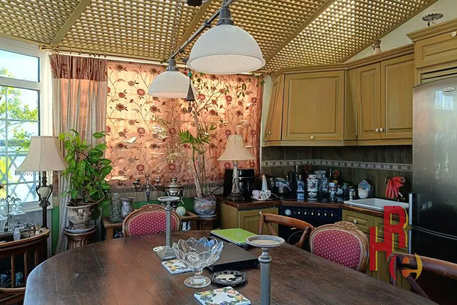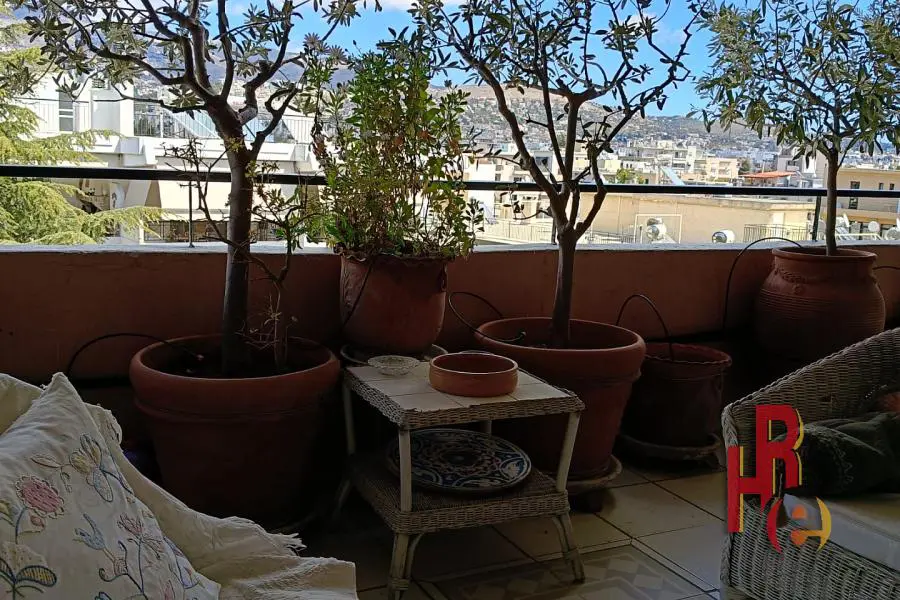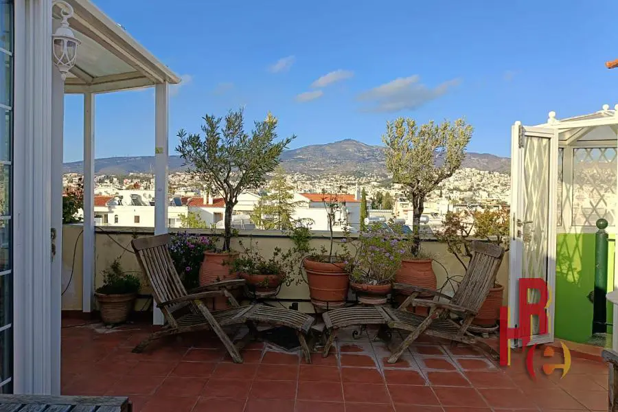 In the center of Vrilissia, a unique penthouse apartment is available for rent, fully furnished and equipped, with a total surface of 120 sq.m., occupying the 4th and 5th floors and complemented by a rooftop loft. The main entrance of the apartment is located on the 5th floor, where you will find a bright and welcoming reception area with a fireplace, harmoniously connected to the dining area and the fully equipped kitchen. This space opens onto a large veranda with an unobstructed view, offering a sense of comfort and privacy. On the 4th floor, there are two bedrooms, a full bathroom, and another large veranda, to which practical additional wardrobes have been added, enhancing the functionality of the home. An external staircase leads from the 5th-floor veranda to the rooftop garden of exclusive use, with a total area of 120 sq.m., ideal for moments of relaxation or social gatherings. There you will also find an independent 45 sq.m. loft, carefully decorated in a French countryside style, which includes a living room with a fireplace, a kitchen with a dining area, one room, and a guest WC. This space is an excellent option for hosting guests or using as an office, offering a unique sense of inspiration and comfort. Surrounding the loft is a beautiful garden with a BBQ corner. It is a very good choice for a couple or digital nomads looking for an inspiring space.