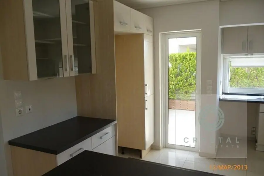 Glyfada - Egli, Apartment,, Rental, 130 sq.m, year built 2005, 3 rooms, Ground Floor, Availability: Available, Heating: Air-condition, Autonomous Oil, View: Mountain, Floor type: Tiles, Wood, Window frames: Aluminum, Energy class: C, Zoning: Residential, Position: Dual-aspect, Inclination: Level, Access from: Asphalt, Includes: Bathroom, Fireplace, Garden, Security door, Solar water heater, Veranda, WC. property ID: 400, www.crystalrealestate.gr