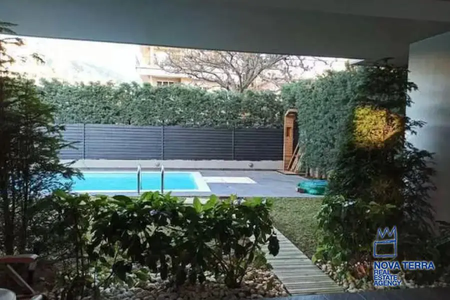 GLYFADA - TERPSITHEA, Apartment,, Rental, 70 sq.m, year built 2012, 2 rooms, Ground Floor, Elevated, Various Characteristics: Balcony, Bath, Garden, Kitchen, Living room, Store Room, Swimming Pool, Flooring: Tile, Wooden floor, Heating: Air Conditioning, Autonomous Gas Heating, Access road, Aluminium panels, Bright, Double-glazing, From Side to Side, Luxury, Painted, Residential area, Screens, Security Door, In perfect condition: Parking area: Parking, Energy class: A. property ID: 18788, www.nova-terra.gr