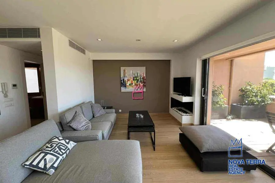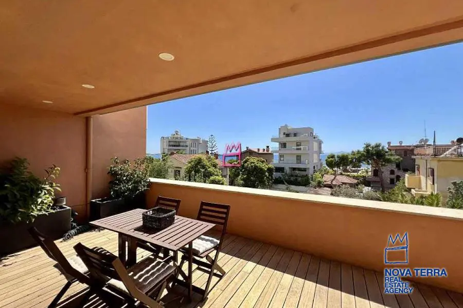 GLYFADA,CENTER, 50M FROM THE BEACH Furnished Apartment, 96 sq.m, year built 2008, 2 rooms, 2nd, View: Seaview, Various Characteristics: Balcony, Bath, Escalator, Fire Place, Refurbished, Store Room, Toilet, Flooring: Wooden floor, Heating: Autonomous Heating, , From Side to Side, Luxury, Minimal, Newly built, Satellite TV, Security Alarm, Security Door, Solar Heating, : : Parking area: Garage, property ID: 40416, www.nova-terra.gr