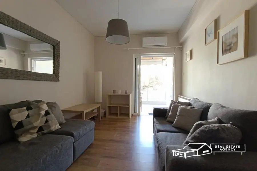Varkiza, on Thiseos str., a renovated apartment of 53 sq m, on the 3rd floor, in a very well-maintained apartment building, is available for rent, walking distance to the center and the sea. It consists of a living room with a large terrace, a kitchen, a bright bedroom and a bathroom with a storage space. It has aluminum frames with double glazing, wooden and tiled floors, autonomous heating with oil, alarm and security door. It is sold fully furnished and equipped. For more info: +30 6932 746491, website: www.merryland.com.gr, Email: [email protected], id: 16103. The location on the map is indicative