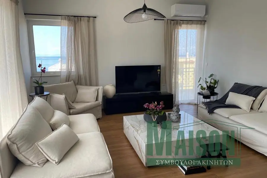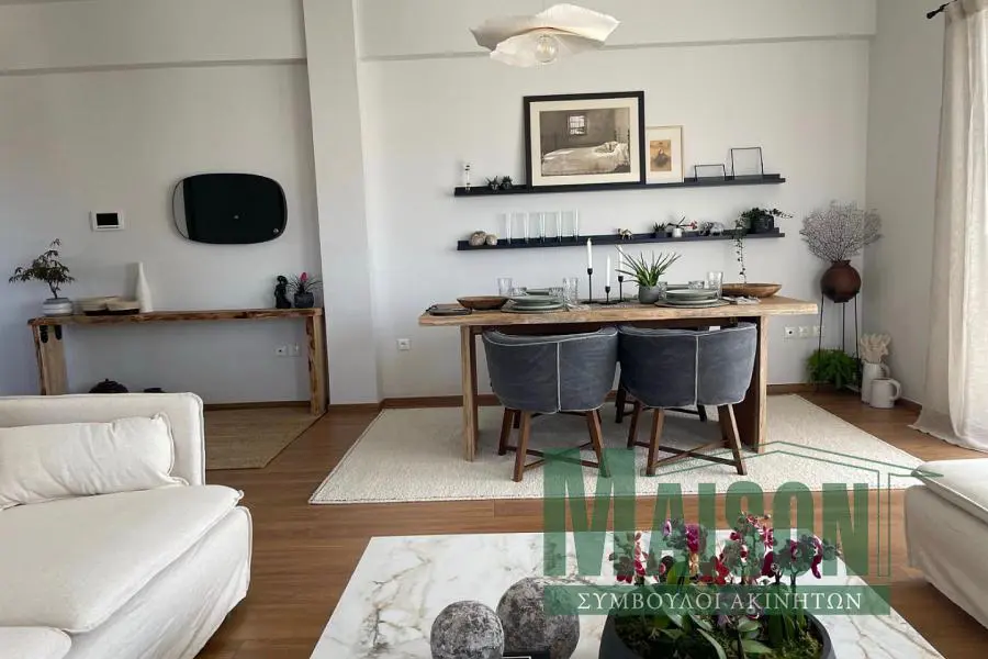 Unique 107 sq.m. apartment for rent in Voula with private roof garden & panoramic sea view A fully furnished apartment of 107 sq.m. is available for rent in Voula, consisting of a main apartment of 97 sq.m. and an additional 10 sq.m. room on the upper level with a private owner’s roof garden / terrace. The main apartment is located on the 3rd floor, corner, front-facing and cross-ventilated, and includes two bedrooms and two bathrooms. It was fully renovated in 2023, freshly painted, and features aluminum window frames with double glazing, laminate flooring, insect screens, security door, solar water heater, elevator, and electrical appliances. Heating and cooling are autonomous via an individual electric system. On the upper level, the property offers a private roof garden with a 10 sq.m. room including a private WC, barbecue area, and outdoor dining space, providing unobstructed panoramic sea views. The property includes an open parking space with electric vehicle charging capability. Pets are allowed. Deposit: two months’ rent plus the current month. Property ID: 20886, www.maison-estate.gr