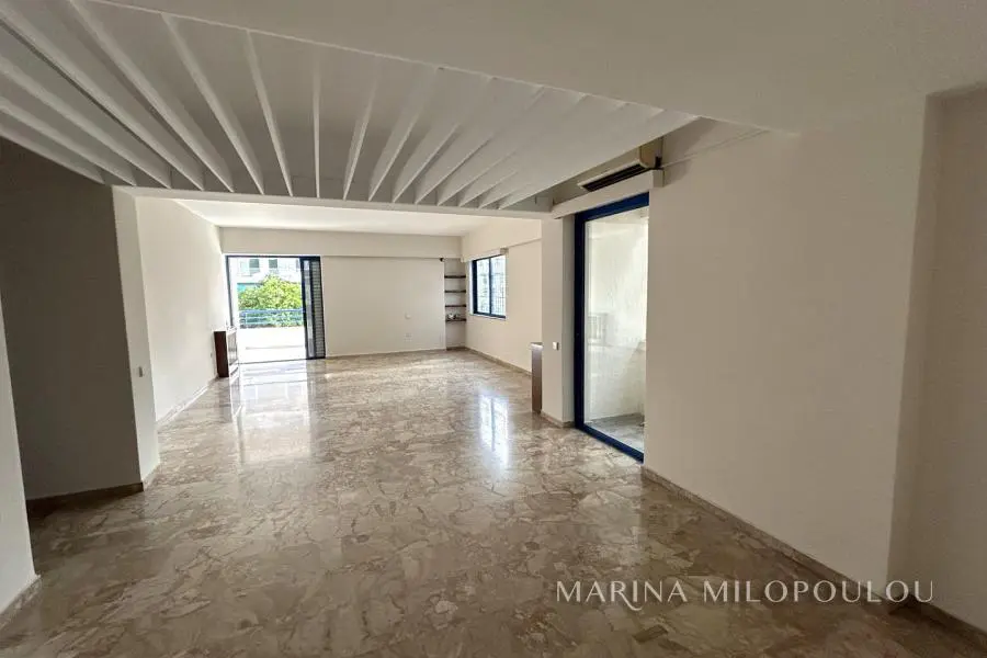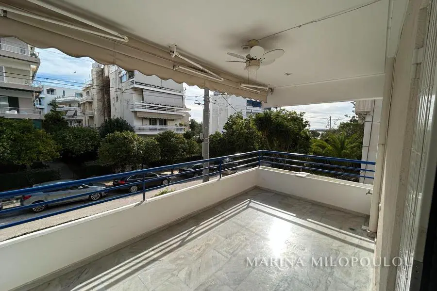 VOULA-Center, a 1st floor apartment, 116sqm, East facing. Consists of a reception-dining area, separate kitchen, 2 bedrooms, 1 bathroom and 1 wc It features a security door, autonomus oil heating, 2 A/Cs, solar water heater, double glazing, large verandas front and back, storage room, 1 covered parking space (piloti), elevator. Maintenance expenses 50€ It is part of a 4-storey building, on a quiet street, 150m from the beach, 350 m from a public hospital, 800m from Voula's organized beach and sports clubs, 1.4 km from the center of Voula, 2,2 km from Glyfada shopping area and 5.5km from the Elliniko Metropolitan Park.