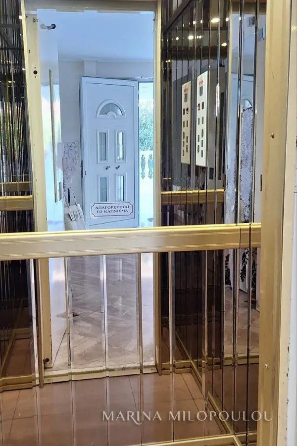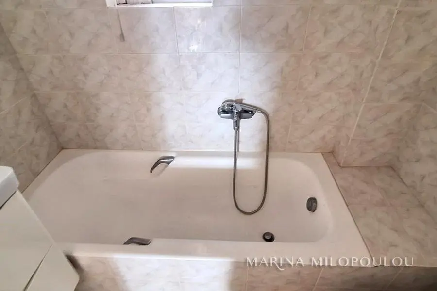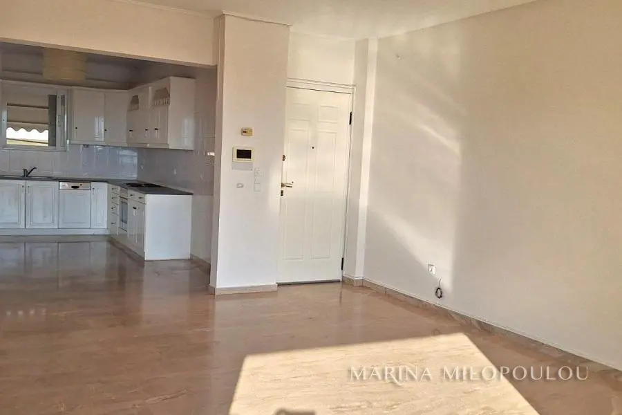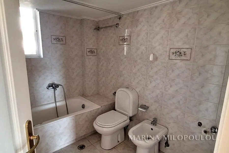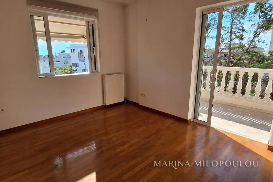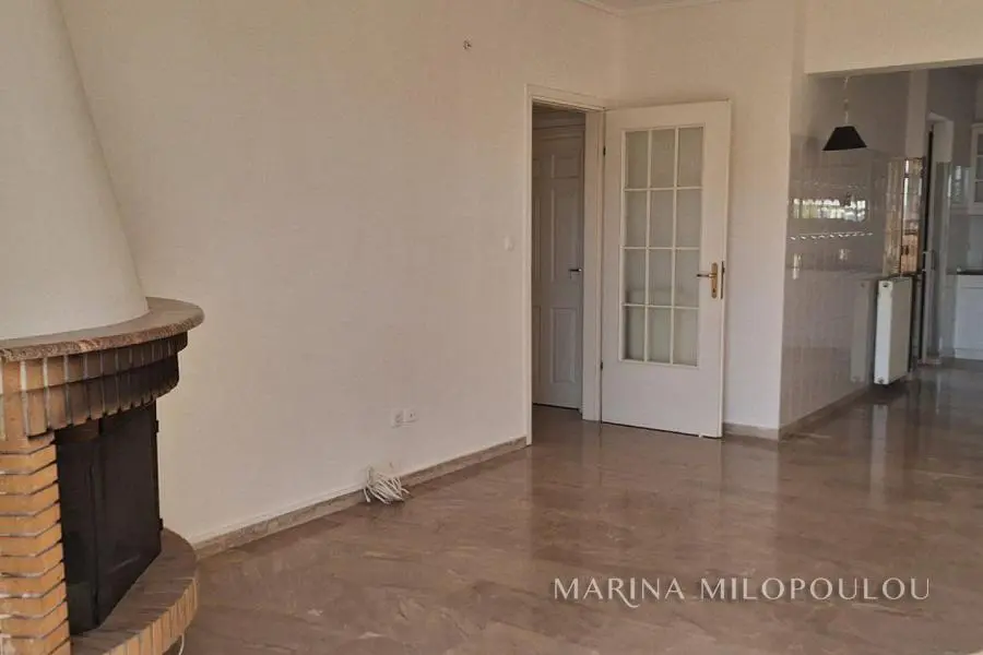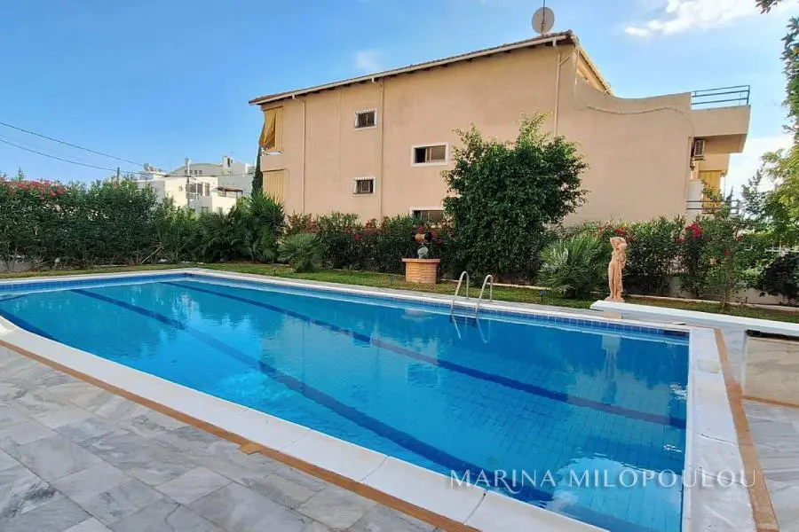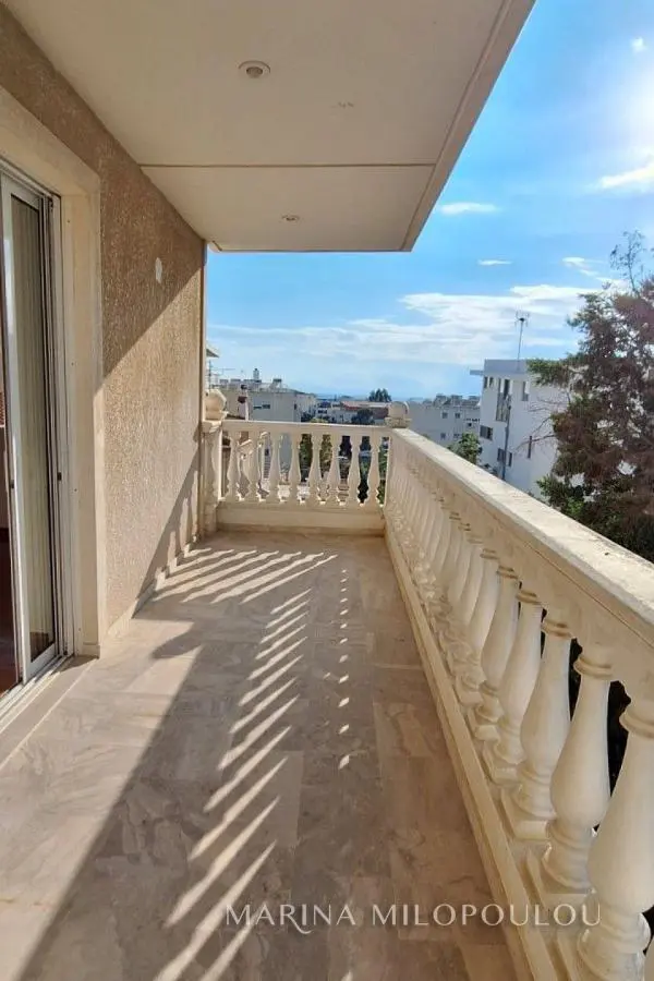 VOULA-Kalimniotika (below Kalimnou Ave), a 2nd floor, bright, airy apartment of 100 sqm, in a quiet area, with large shared pool. Reception area with fireplace, dining area, open spacious kitchen with built-in electrical appliances - stove - dishwasher, 2 large bedrooms with exti to verandas, 2 spacious bathrooms, front veranda with some sea view and pool view. It features oak floors in the bedrooms and marble in the rest areas, large terraces, autonomous oil heating, 2 A/Cs, solar water heater, open parking space. Small pet accepted. It Is part of a classical 3-storie, 6-apartment building with piloti on the groundfloor. Μaintenace expenses aprox 200€/month. It is located 290 meters from a local deli market, 800m from Kavouri organized beach (Apollon Hotel), 900 m from Voula's center. Available from 10/2025 for long term lease.