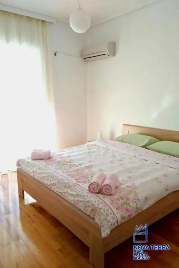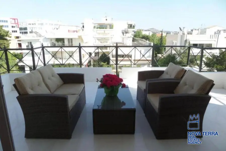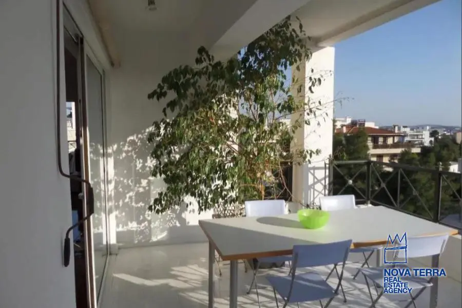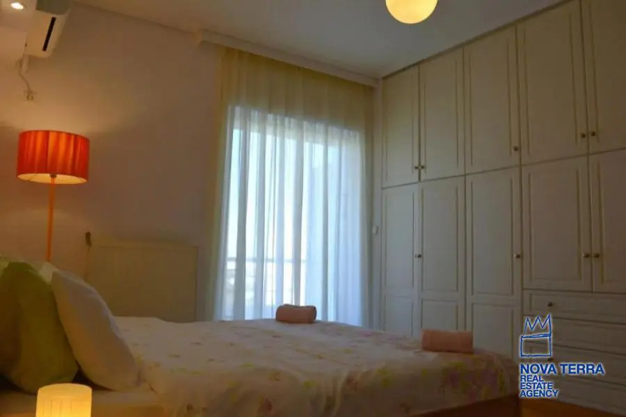Επιπλωμενο, ηλιόλουστο, διαμπερές ρετιρέ 4ου οροφου με ανατολικό προσανατολισμό. Θεα θάλασσα και βουνό. Αυτονομη θερμανση (φυσικο αεριο) με ηλιακα panel, και air-condition. Τεράστιες βεραντες. 1 σαλονι, 1 Κουζινα, 1 Master Bathroom, 1 wc με ντουζιερα, 2 υπνοδωματια, με walk-in closet room στο 1 Υ/Δ. Κάθε δωματιο έχει δικό του ανεξάρτητο μπαλκόνι. Δαπεδο: ξυλο (σαλονι, Υ/Δ, χωλ), μαρμαρο (κουζινα, μπαλκόνια), πλακάκι (μπανια). Ηκεκτρικες συσκευες. Λειτουργικο τζακι. Αποθήκη 25τμ.στο υπόγειο. Υπόγεια θέση στάθμευσης με αμεση πρόσβαση στο ασανσέρ της πολυκατοικίας. Χρήση κοινοχρηστου κήπου. Ανακαινιση 2024. Διαθέσιμο από τον Οκτώβρη του 2024.