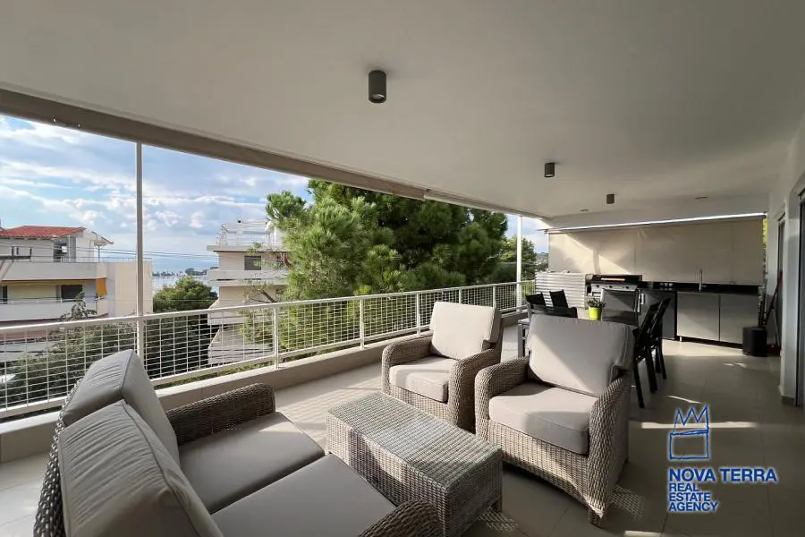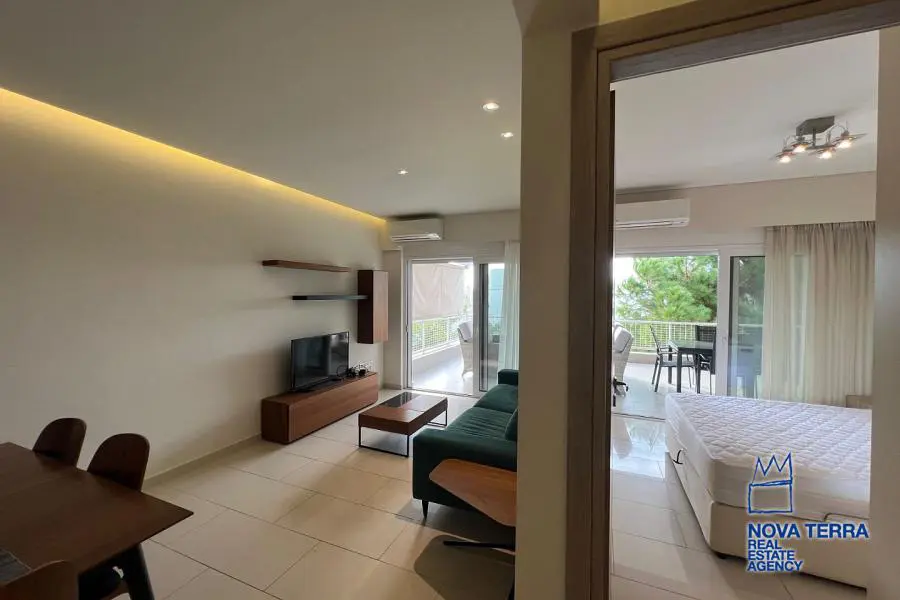 VOULIAGMENI, Apartment, 63 sq.m, year built 1980, renovated in 2019, 2 rooms, 2nd, View: Seaview, Unobstracted view, Various Characteristics: Balcony, Bath, Furnished, Refurbished, Flooring: Murble, Heating: Air Conditioning, Autonomous Heating, , Luxury, Newly built, Satellite TV, Security Alarm, Security Door, Tents, : : : : Energy class: C, property ID: 43706, www.nova-terra.gr