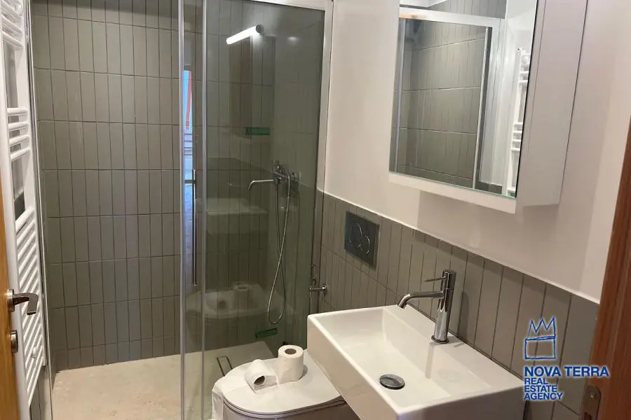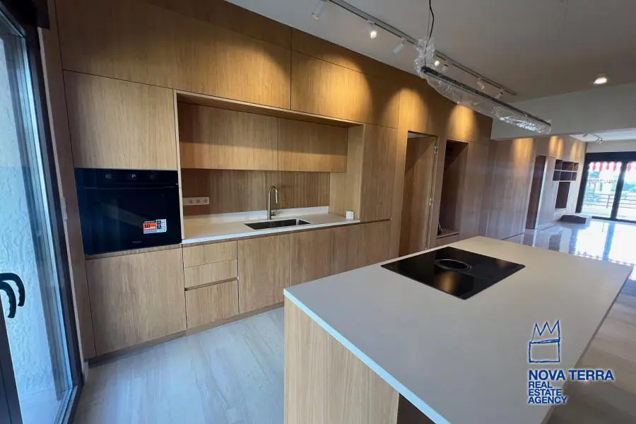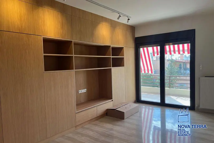 VOULIAGMENI - SYNIKISMOS EMPORIOU Apartment for Rent, 115 sq.m, built in 1970, 2 bedrooms, 3rd floor, Woodland view. Features include balcony, 2 bathrooms, kitchen, living room, refurbished, storage room, master bedroom, marble and wooden flooring, air conditioning, oil heating, access road, aluminum panels, security alarm, solar heating, study. Parking available. Energy class: C. Property ID: 46991. Visit www.nova-terra.gr for more information. Luxurious and in perfect condition. Located in a residential area.