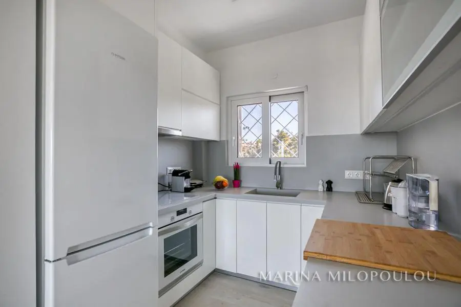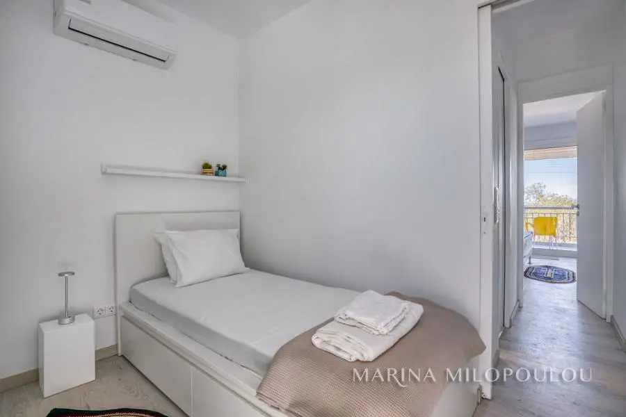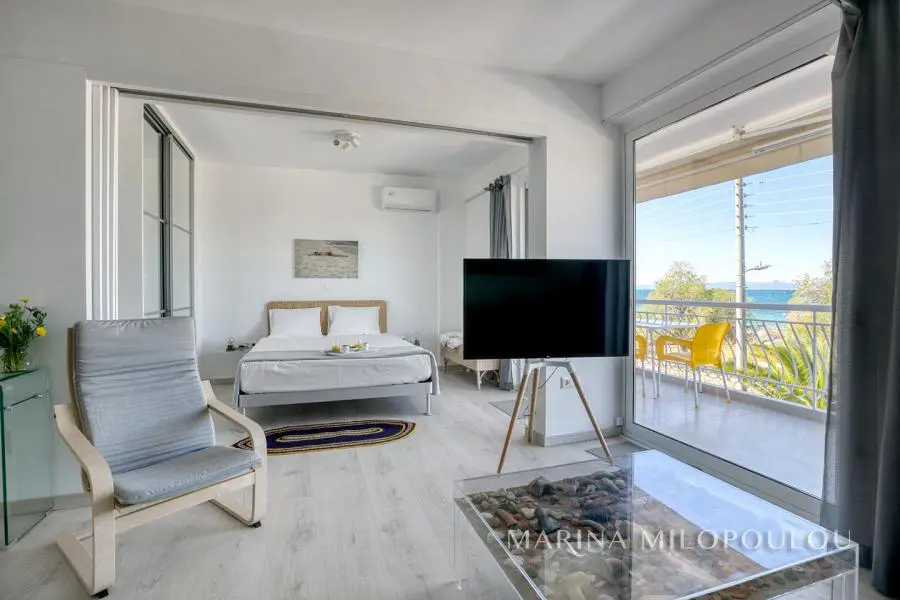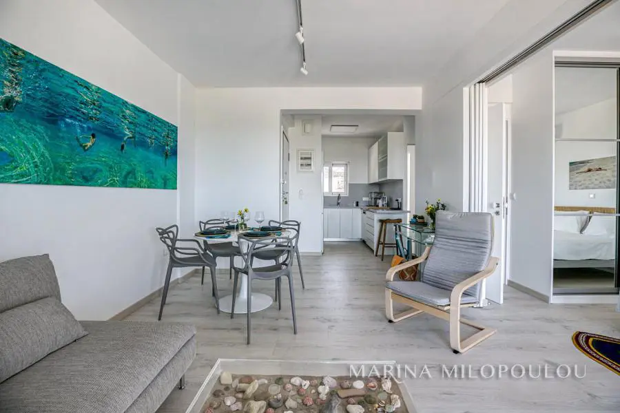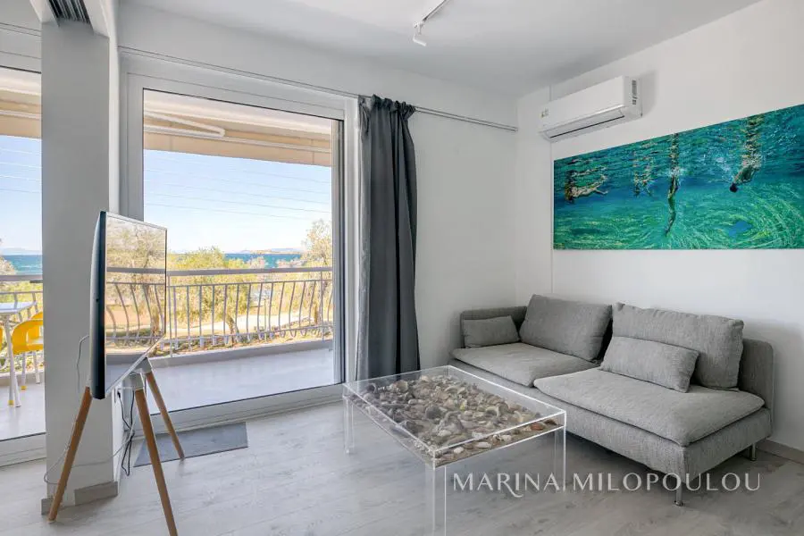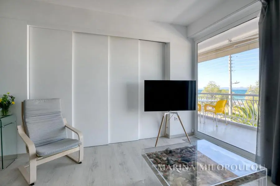 VOULIAGMENI, on the beach road of Kavouri and borders with Voula, a fully furnished and renovated apartment, 50 sqm, on the 2nd floor, with unlimited sea view from the apartment. Living-dining area separated by a sliding door from the bedroom, 2nd small room (as an office or bedroom), 1 bathroom and front terrace. Tasteful decoration, abundant light due to the Western orientation, 50 meters from the organized beach of Apollon Hotel. It features triple glazing, security door, heating / cooling from air conditioners, awnings, 2 large wardrobes. WITHOUT elevator. No comon expenses. Excellent location next to the sandy beaches of Mikro Kavouri, at a distance of 700 meters from the walking path of Megalo Kavouri, 1.2 km from the center of Voula and 2.5 km from the center of Vouliagmeni. Available for long term lease from March, 1st 2026.