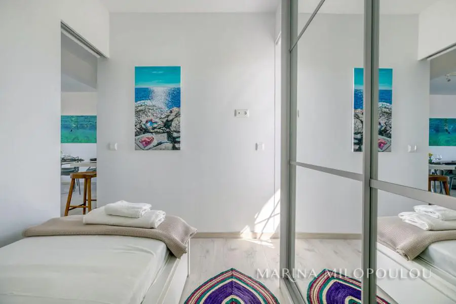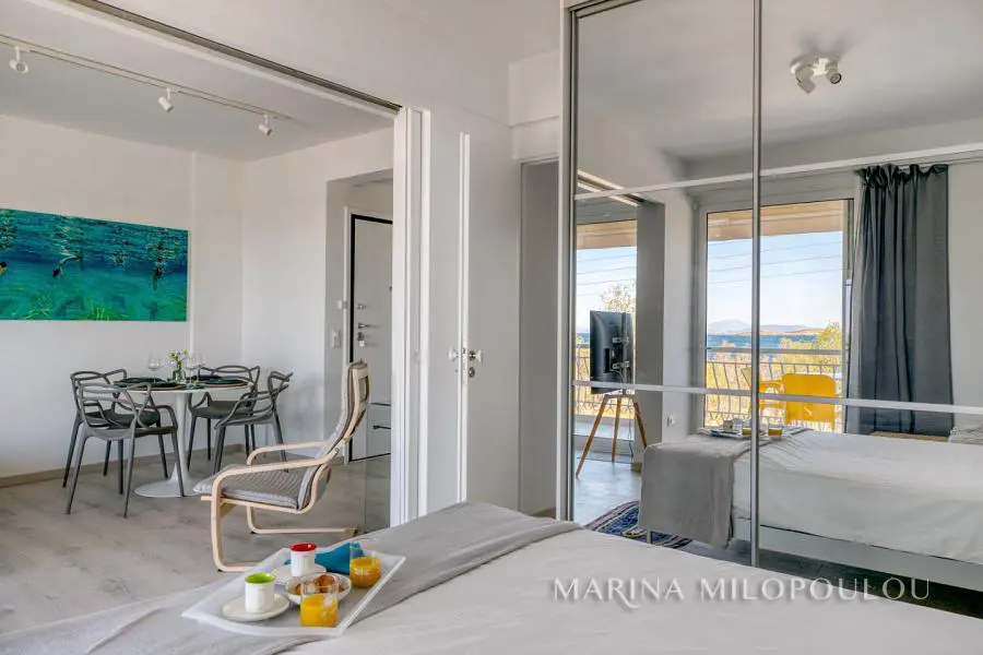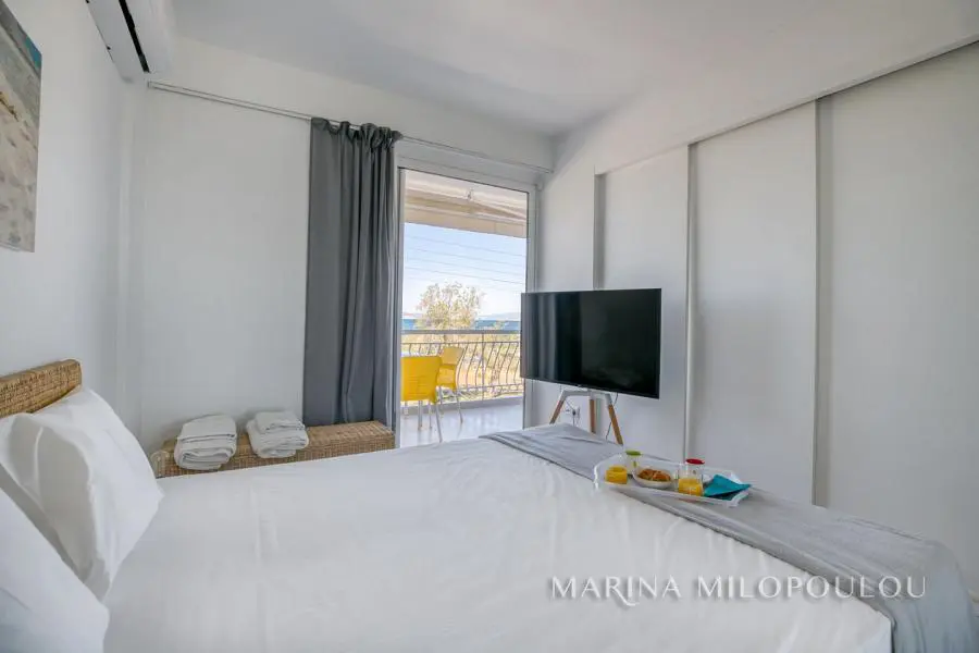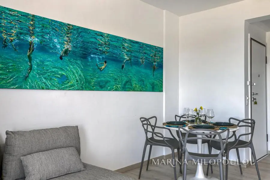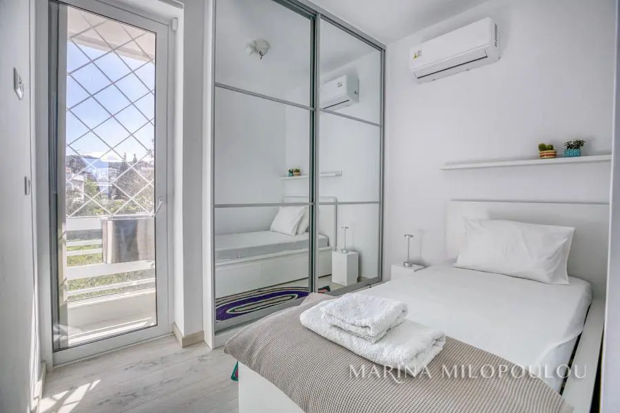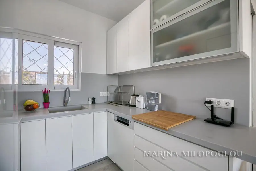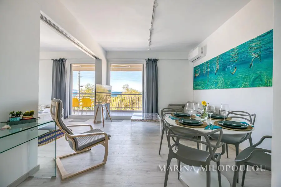 VOULIAGMENI, on the beach road of Kavouri and borders with Voula, a fully furnished and renovated apartment, 50 sqm, on the 2nd floor, with unlimited sea view from the apartment. Living-dining area separated by a sliding door from the bedroom, 2nd small room (as an office or bedroom), 1 bathroom and front terrace. Tasteful decoration, abundant light due to the Western orientation, 50 meters from the organized beach of Apollon Hotel. It features triple glazing, security door, heating / cooling from air conditioners, awnings, 2 large wardrobes. WITHOUT elevator. No comon expenses. Excellent location next to the sandy beaches of Mikro Kavouri, at a distance of 700 meters from the walking path of Megalo Kavouri, 1.2 km from the center of Voula and 2.5 km from the center of Vouliagmeni. Available for long term lease from March, 1st 2026.
