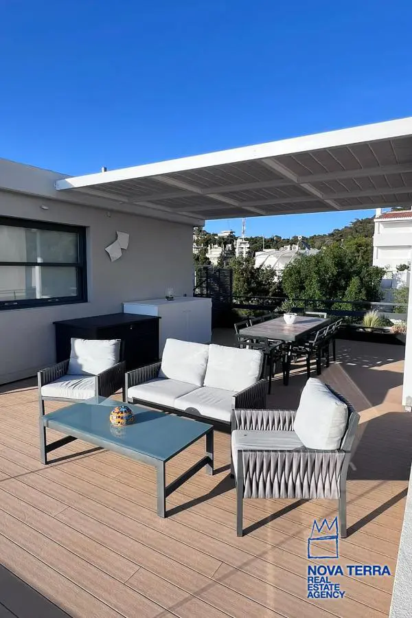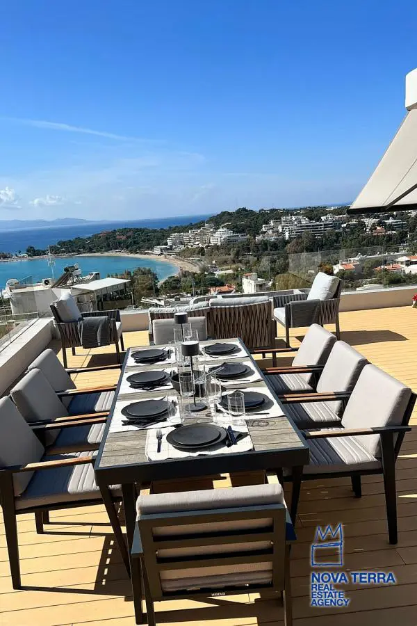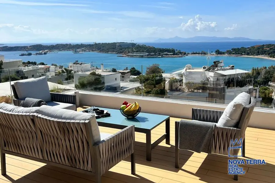 Discover a charming loft in Vouliagmeni, fully renovated in 2020, 25 m2, offering stunning sea & sunset views of the Vouliagmeni coast. The loft includes, a 200m2 private terrace with a jacuzzi, (not available at all times) perfect for enjoying sunset views, seaview dinners, and lounging on sunbeds. This comfortable and luxurious retreat is ideal for a memorable stay. Book now to experience this exceptional location.