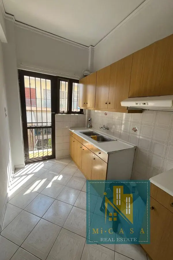 Apartment for rent in Korydallos, 50 sq.m, built in 1993, 1 room, elevated, available now. Features air-conditioning, aluminum window frames, residential zoning, dual-aspect position, asphalt access, and bright interior. Property ID: 1540.