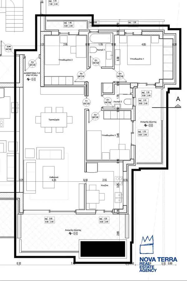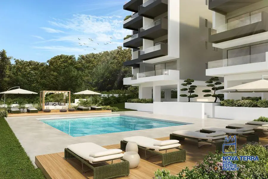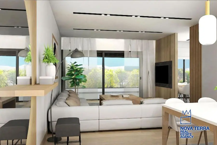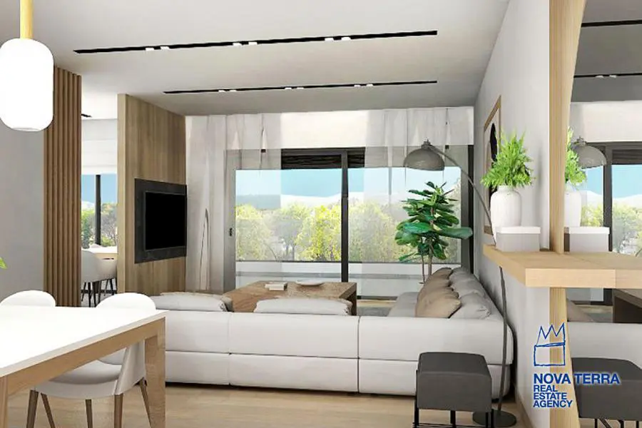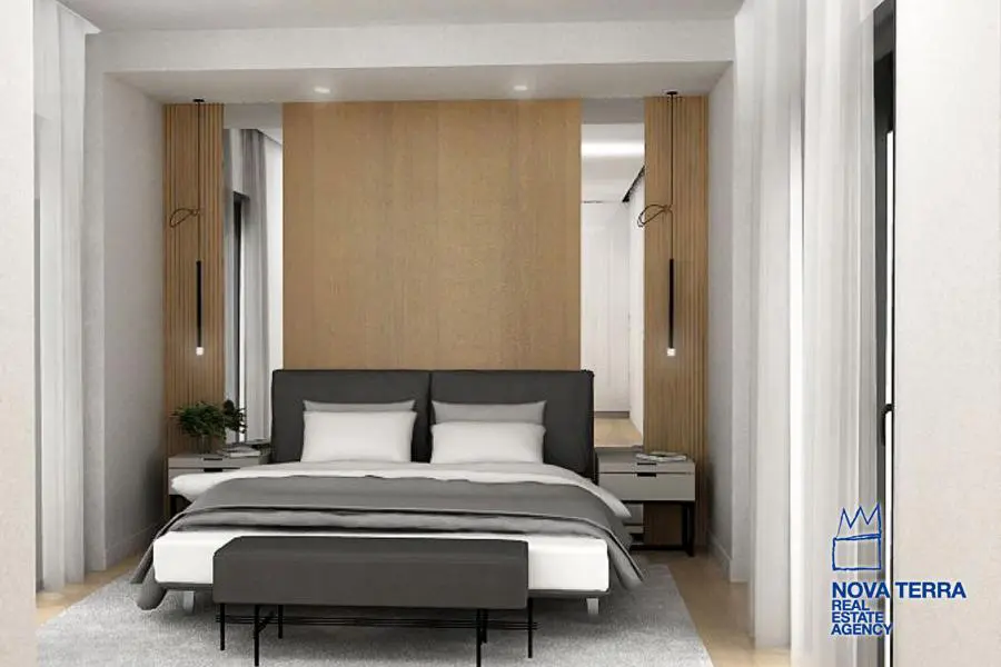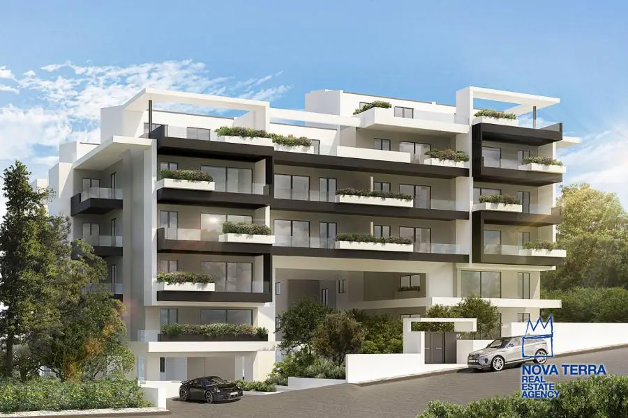 ALIMOS - LOFOS PANI, Apartment,, Sale, 108 sq.m, year built 2023, 3 rooms, 3rd, Various Characteristics: Balcony, Bath (2), Escalator, Fire Place, Kitchen, Living room, Store Room, Flooring: Wooden floor, Heating: Air Conditioning, Autonomous Gas Heating, Access road, Aluminium panels, Bright, Double-glazing, Facade, From Side to Side, Luxury, Minimal, Newly built, Painted, Residential area, Rooftop use, Screens, Security Door, Solar Heating, In perfect condition: : : : Parking area: Garage (2), Energy class: Α+. property ID: 48089, www.nova-terra.gr