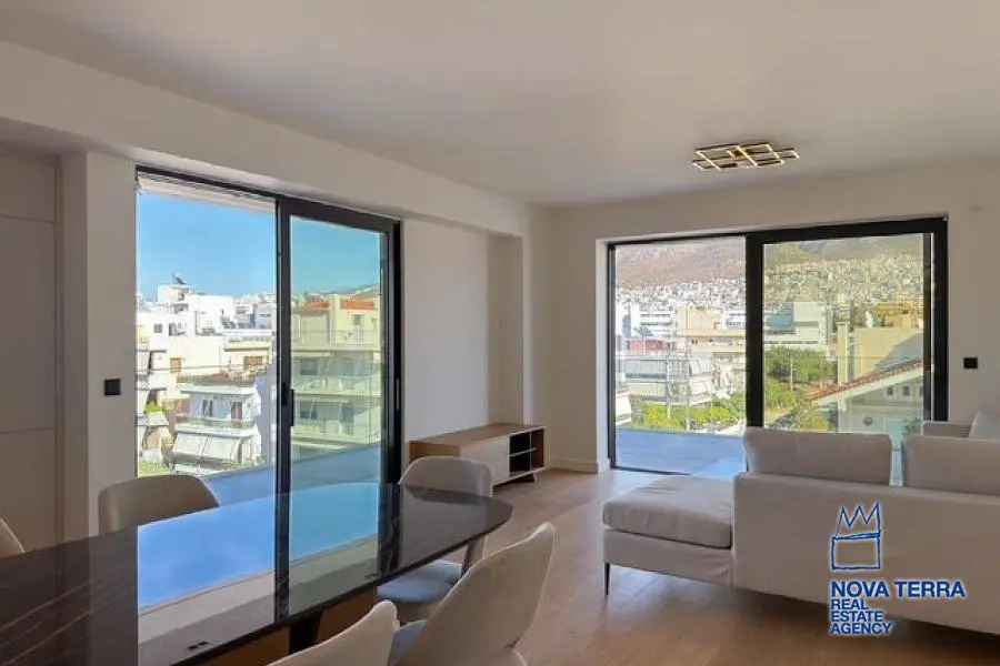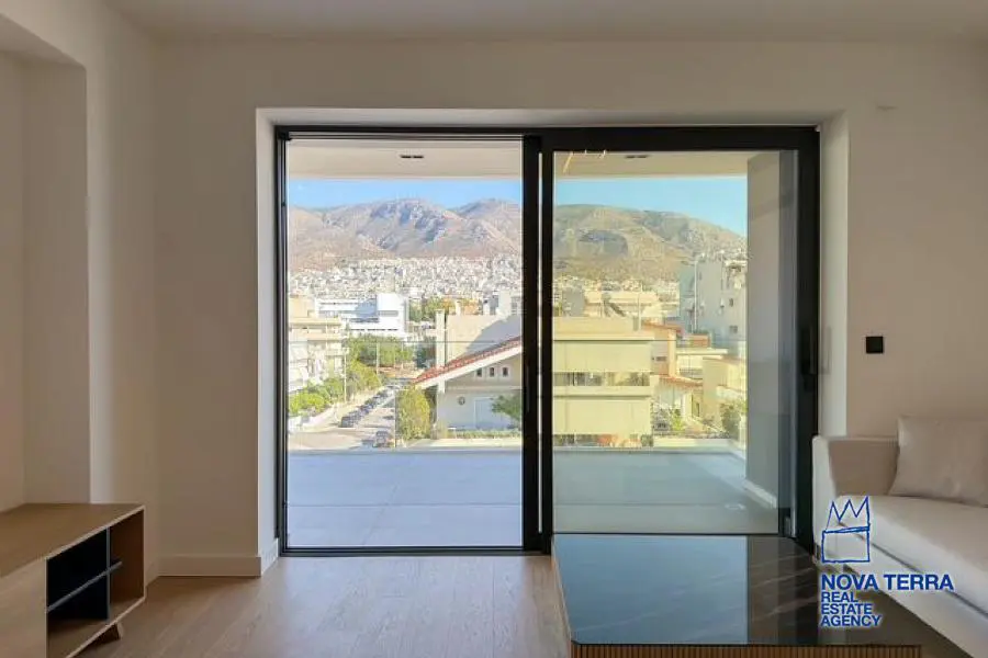 ALIMOS - TRACHONES, Apartment,, Sale, 90 sq.m, year built 2024, 2 rooms, 5th, View: Mountain view, Various Characteristics: Balcony, Bath (2), Escalator, Furnished, Kitchen, Living room, Store Room, Flooring: Wooden floor, Heating: Air Conditioning, Floor heating, Access road, Aluminium panels, Bright, Double-glazing, Facade, From Side to Side, Luxury, Minimal, Newly built, Night charge, Painted, Residential area, Screens, Security Door, Solar Heating, Tents, In perfect condition: : : Parking area: Parking, Energy class: A. property ID: 50663, www.nova-terra.gr