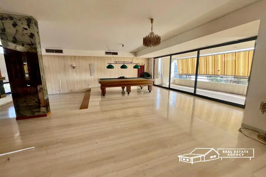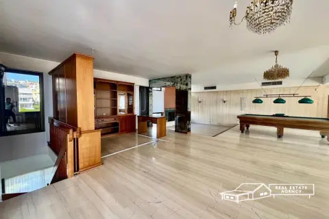 Alimos, Lofos Pani, duplex apartment of 402 sqm, on the 3rd and 4th floor, sea view. It is an airy and bright apartment with wide balconies and panoramic views. On the 4th floor, which is 240 sqm, there is a huge living room with 2 fireplaces, kitchen and a wc, as well as an office, billiards table and veranda with panoramic and unobstructed sea view. On the 3rd floor, which is 162 sqm, there is a spacious sitting room with fireplace, 4 bedrooms (two with private bathroom and walk in closet) and another bathroom. It has autonomous heating with heat pump, generator, large underground parking of 50 sqm, marble floors, aluminum frames with double glazing. For more info: +30 6944 772536, website: www.merryland.com.gr, Email: [email protected], id: 16335.