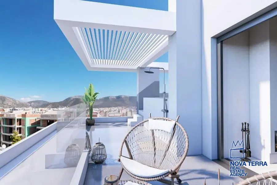 ELLINIKO, Apartment,, Sale, 125 sq.m, year built 2025, 3 rooms, 5th, View: Mountain view, Various Characteristics: Balcony, Bath (3), Escalator, Fire Place, Kitchen, Living room, Penthouse, Store Room, Swimming Pool, Heating: Air Conditioning, Autonomous Heating (auto-system), Heating pump, Access road, Boiler, Bright, Double-glazing, Minimal, Night charge, Security Alarm, Security Door, Wheelchair Facilities, Parking area: Garage (2), Energy class: Α+. property ID: 52446, www.nova-terra.gr