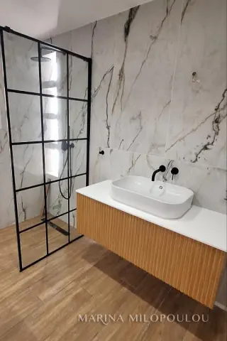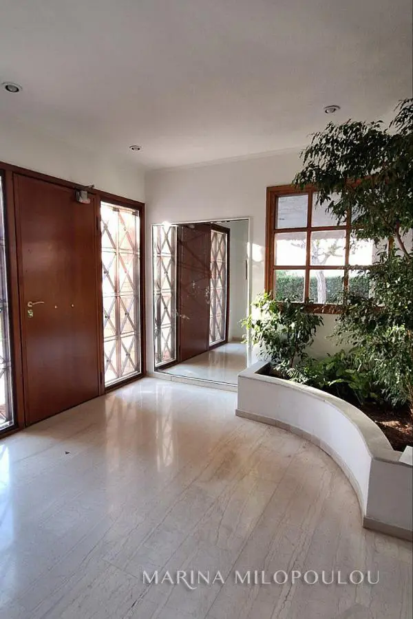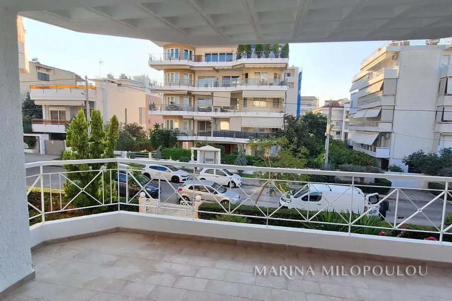 GLYFADA-Pirnari, a renovated apartment, on the 1st floor, 100sqm, South orientation. Consists of a reception-dining area, open plan kitchen with built-in electrical appliances, 2 bedrooms (possibility of a third one), 1 spacious bathroom, 1 wc, frontage vernada, large corner veranda at the backside and private veranda for the large bedroom, all with beautiful garden views. It featured a security door, autonomous oil heating, energy fireplace, double glazing, thermal-break windows, nets, oak floor in the bedrooms and large granite tiles in the rest areas, hidden lighting with dimmer, awnings at the west veranda, small storage space above the wc, basement storage room 5sqm, 1 covered parking space (piloti), elevator. Maintenance expenses 60€/month. It is part of a corner four-storey building with a pilotis and well-maintained surrounding grounds, comprising a total of 7 apartments. Distance 700 meters from major supermarkets, schools, and municipal sports facilities; 2 km from Glyfada’s shopping area; 2.5 km from the sea; 5 km from the Hellinikon Metropolitan Park, and 24 km from the intern. airport.
