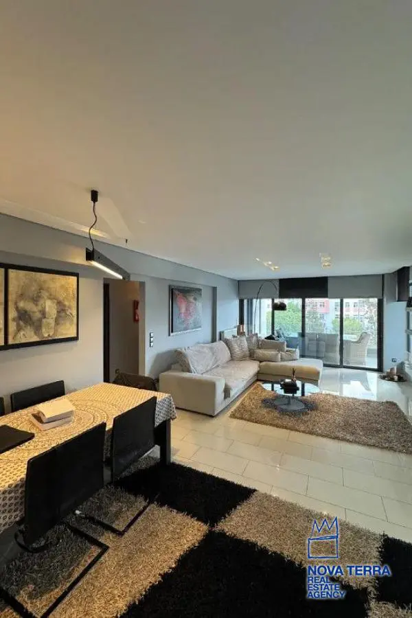 GLYFADA - PYRNARI, Apartment,, Sale, 105 sq.m, year built 2011, 3 rooms, 2nd, Various Characteristics: Balcony, Bath, Escalator, Fire Place, Furnished, Kitchen, Living room, Store Room, Toilet, Flooring: Tile, Heating: Air Conditioning, Autonomous Heat oil, Access road, Aluminium panels, Bright, Double-glazing, Facade, From Side to Side, Luxury, Minimal, Night charge, Painted, Residential area, Security Alarm, Security Door, In perfect condition: Parking area: Parking, Energy class: Β. property ID: 52948, www.nova-terra.gr