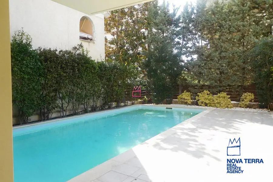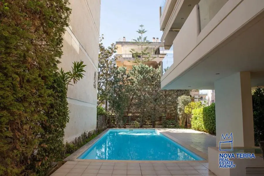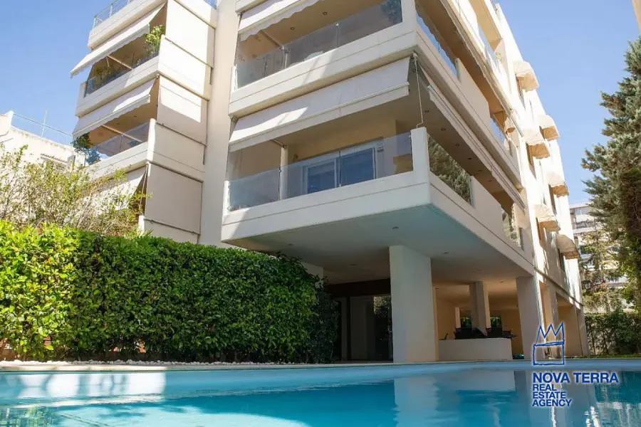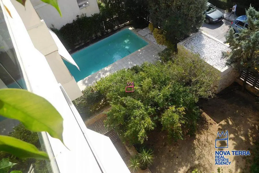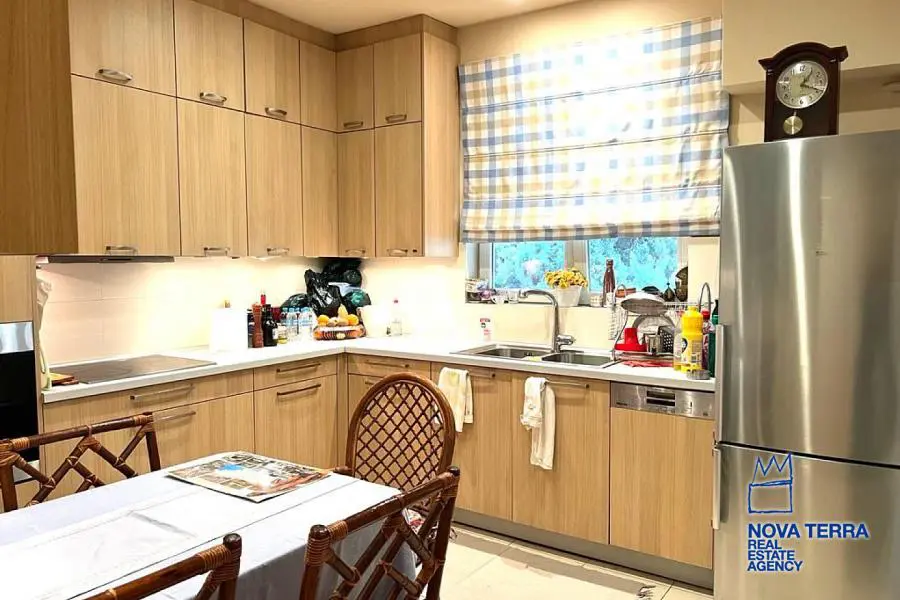 GLYFADA - EVRUALI, Apartment,, Sale, 135 sq.m, year built 2007, 3 rooms, 2nd, Various Characteristics: Balcony, Bath (2), Escalator, Fire Place, Kitchen, Living room, Store Room, Swimming Pool, Toilet, Master Bedrooms: 1 Master Bedroom, Flooring: Wooden floor, Heating: Autonomous Gas Heating, Autonomous Heating-central systm, Access road, Aluminium panels, Boiler, Bright, Corner Block, Double-glazing, From Side to Side, Luxury, Painted, Residential area, Screens, Security Alarm, Security Door, Tents, In perfect condition: Parking area: Parking, Energy class: Β. property ID: 49592, www.nova-terra.gr