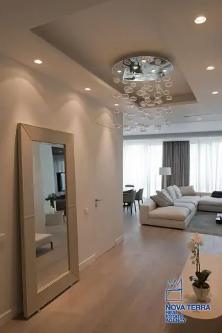 Luxurious apartment on the 4th floor in kato glyfada, fully refurbished and furnished. Open view. Open kitchen (white) with the latest equipment 2 master bedrooms with bathrooms Central AC big balcony with outdoor furniture and tents Elevator Well maintained building Close to shops and restaurants