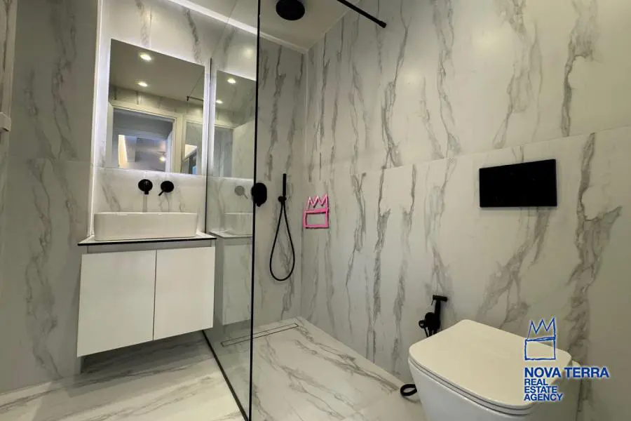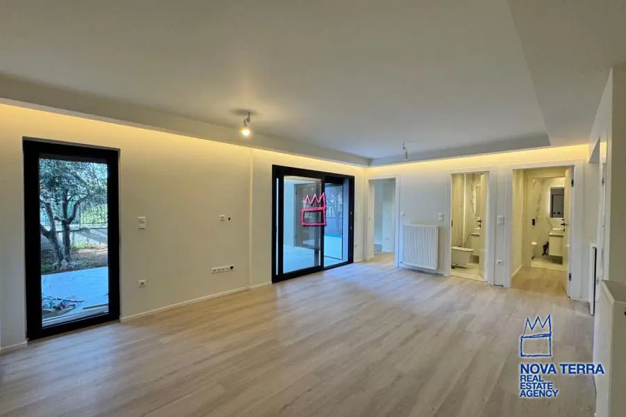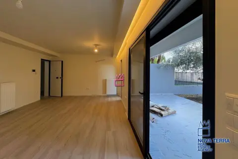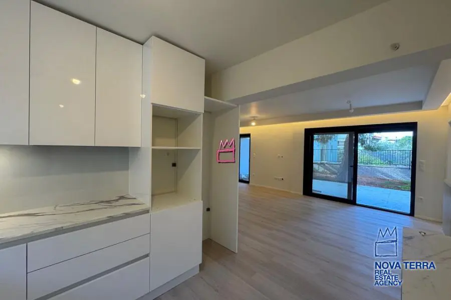 GLYFADA - EXONI, Apartment,, Sale, 81 sq.m, year built 2023, 2 rooms, Ground Floor, Various Characteristics: Balcony, Bath (2), Escalator, Garden, Kitchen, Living room, Refurbished, Toilet, Master Bedrooms: 2 Master Bedrooms, Flooring: Wooden floor, Heating: Air Conditioning, Floor heating, Heating pump, Access road, Aluminium panels, Bright, Double-glazing, Electric Roller Windows, Facade, From Side to Side, Luxury, Minimal, Newly built, Painted, pets allowed, Residential area, Screens, Security Alarm, Security Door, Solar Heating, Weekend Residence, In perfect condition: Pets allowed: Satellite dish: For investment: Parking area: Parking, Energy class: A. property ID: 49092, www.nova-terra.gr