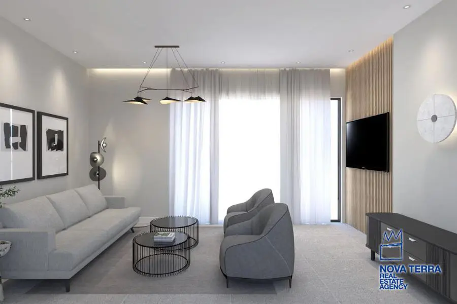GLYFADA - GLYFADA ANO, Apartment,, Sale, 81 sq.m, year built 2023, 2 rooms, Ground Floor, Various Characteristics: Balcony, Bath (2), Garden, Kitchen, Living room, Master Bedrooms: 2 Master Bedrooms, Flooring: Heating: Air Conditioning, Autonomous Heating-central systm, Floor heating, Access road, Aluminium panels, Bright, Double-glazing, From Side to Side, Luxury, Minimal, Painted, Residential area, Security Door, Solar Heating, In perfect condition: Parking area: Parking, Energy class: A. property ID: 49092, www.nova-terra.gr