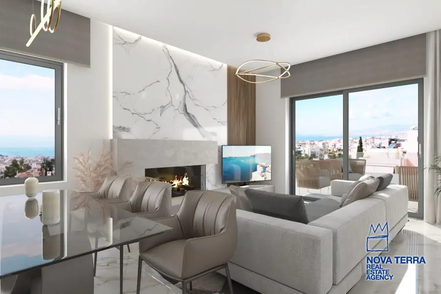 GLYFADA - GLYFADA ANO, Penthouse,, Sale, 162 sq.m, year built 2022, 3 rooms, 5th, 6th, View: Seaview, Various Characteristics: Balcony, Bath (3), Escalator, Fire Place, Kitchen, Living room, Penthouse, Store Room, Master Bedrooms: 3 Master Bedrooms, Flooring: Wooden floor, Heating: Autonomous Gas Heating, Access road, Aluminium panels, Bright, Double-glazing, Electric Roller Windows, Facade, From Side to Side, Luxury, Minimal, Newly built, Painted, pets allowed, Residential area, Satellite TV, Security Alarm, Security Door, Solar Heating, Weekend Residence, Wheelchair Facilities, In perfect condition: : : : Parking area: Parking, Energy class: A. property ID: 46854, www.nova-terra.gr