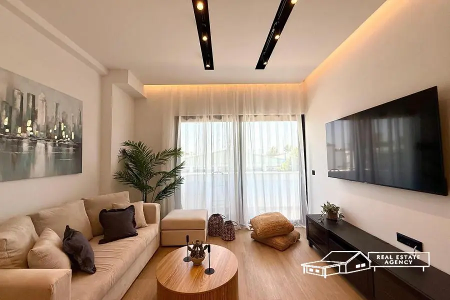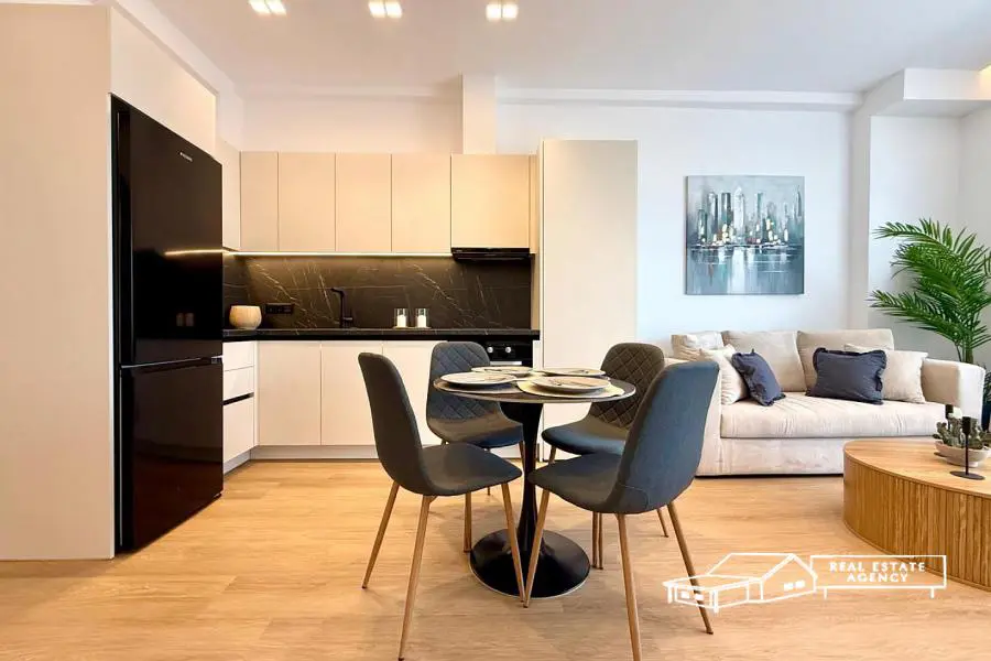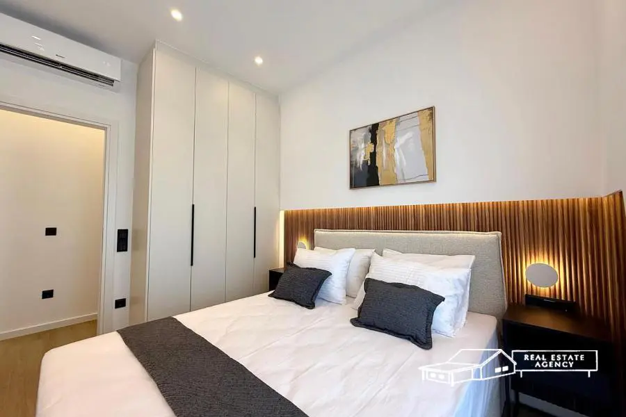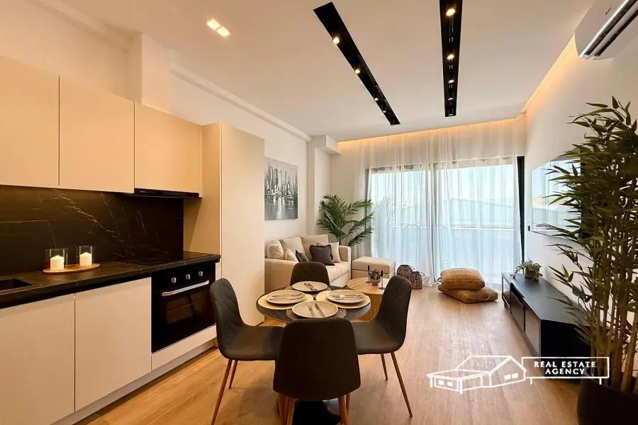 At Moschato, a sea-side suburb, stratigically located just minutes from key city locations, an excellent newly built apartment of 60sqm, on the 3rd floor, is available for sale with a 10 sqm balcony. It consists of a living room with open plan kitchen, 2 bedrooms and 2 bathrooms. It has autonomous heating, oak floors, armored door, aluminum frames with double glazing. It is located very close to the train station (5 min), while it is 4 minutes away from supermarkets, pharmacies and schools, as well as 10 min from Palaio Faliro, Athens center, Piraeus port and Stavros Niarchos Foundation. It is sold fully furnished and equipped and it is ready for delivery. Guaranteed rental income of 3%. Contact phone: +30 6932 746491, website: www.merryland.com.gr, Email: [email protected], Id: 15823