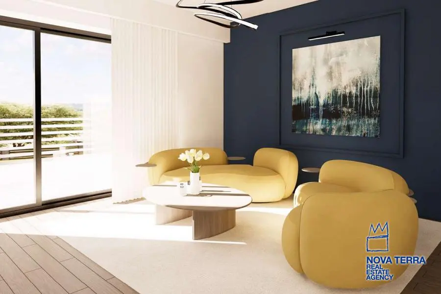 DAFNI, Apartment,, Sale, 100 sq.m, year built 2025, 2 rooms, 2nd, Various Characteristics: Balcony, Bath, Escalator, Kitchen, Living room, Store Room, Toilet, Heating: Autonomous Heating (auto-system), Access road, Aluminium panels, Bright, Double-glazing, From Side to Side, Luxury, Painted, Residential area, Security Door, Solar Heating, In perfect condition: Pets allowed: Parking area: Parking, Energy class: A. property ID: 52731, www.nova-terra.gr