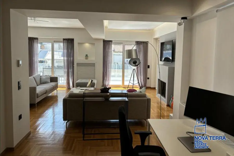 KOLONAKI - KENTRO, Apartment,, Sale, 135 sq.m, year built 1965, renovated in 2021, 1 rooms, 5th, View: Unobstracted view, Various Characteristics: Balcony, Bath (2), Escalator, Kitchen, Living room, Refurbished, Toilet (2), Heating: Air Conditioning, Autonomous Gas Heating, Autonomous Heating (auto-system), Access road, Aluminium panels, Bright, Double-glazing, From Side to Side, Luxury, Painted, Residential area, Security Door, Solar Heating, Tents, In perfect condition: Pets allowed: Parking area: Parking, Energy class: C. property ID: 52940, www.nova-terra.gr