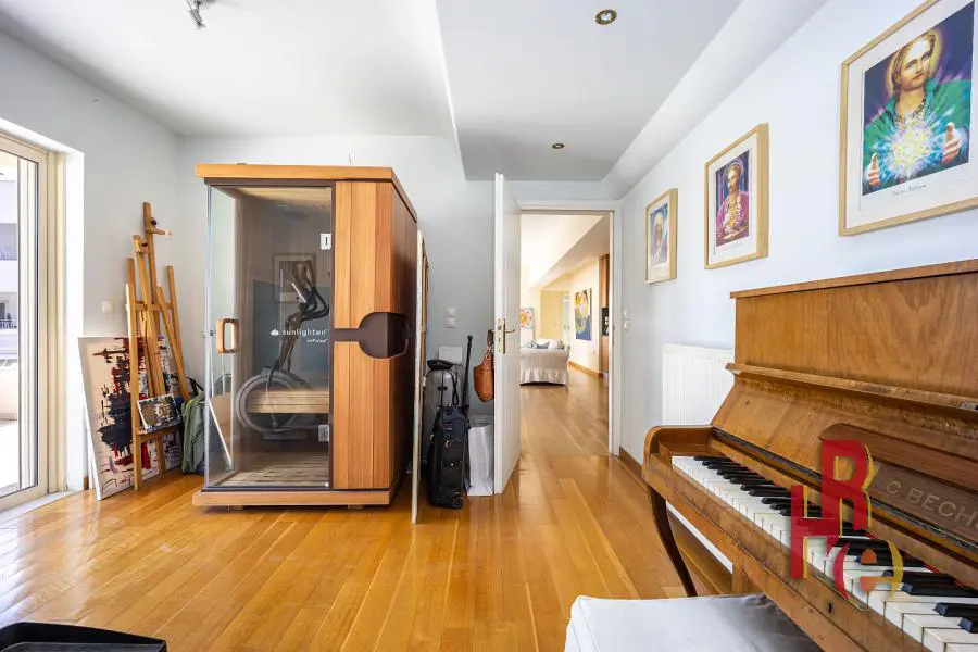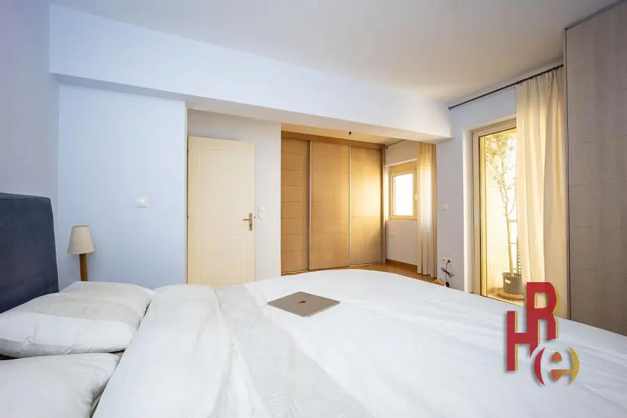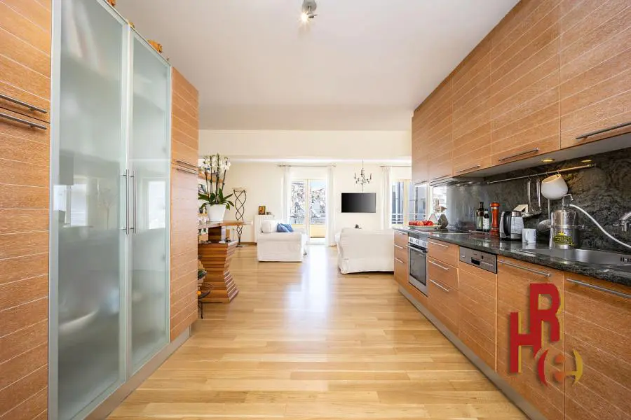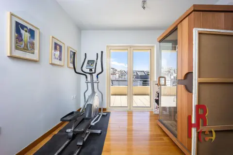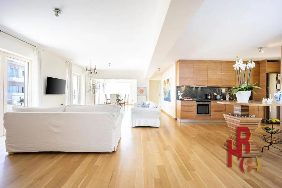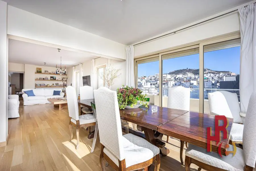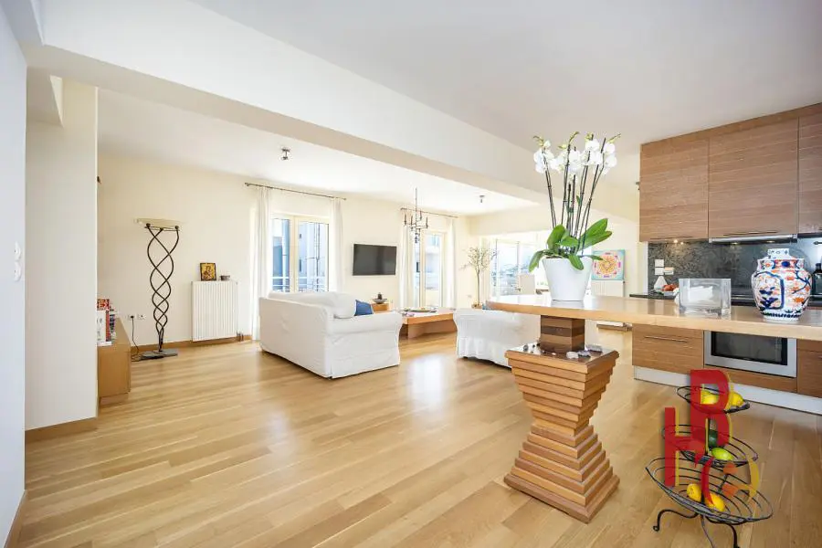 On the eighth floor of a modern building lies this 153 sq.m. apartment, built in 2006, distinguished by its functionality and sense of spaciousness. With a corner layout, large verandas, and open views, it offers the perfect balance between everyday comfort and quality living. The apartment features two bedrooms, two bathrooms, a spacious living room, a functional kitchen, and a separate laundry room, all designed to fully meet the needs of a family or couple. Wooden floors and aluminum frames with double glazing combine elegance with practicality, while the security door ensures additional safety. Further advantages include a storage room and a closed garage, making daily life easier. Its location is truly strategic, just behind the Courthouses and near Pedion tou Areos, a green oasis in the city, while also being next to public transportation. It is an ideal choice for those who want immediate access to the city without giving up peace and natural light. An apartment that brings together everything one could look for: comfort, a privileged location, and high-quality construction – a truly exceptional opportunity.