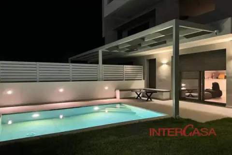 Ολοκαίνουργιο διαμέρισμα, σε νεόδμητη πολυκατοικία με θερμοπρόσοψη, και διακοσμημένο με γούστο. Ισόγειο, Ιδιωτική είσοδος, ιδιωτικός κήπος και ιδιωτική πισίνα. Πλήρως εξοπλισμένη κουζίνα, αντλία θερμότητας (ενδοδαπέδια θέρμανση), και A/C ενσωματωμένο στην οροφή. Αποθήκη στο ισόγειο επίσης. 65 Μ3, Ανοιχτό Σαλόνι, Κουζίνα και Τραπεζαρία. 1 master bedroom, 1 w/c Συναγερμός και εξωτερική κάμερα ασφαλείας. Θάλασσα, εστιατόρια, σούπερ μάρκετ, φαρμακείο, κρεοπωλείο, φούρναρης, βενζινάδικο, κομμωτήριο, όλα αυτά σε απόσταση 0-300 μέτρων.