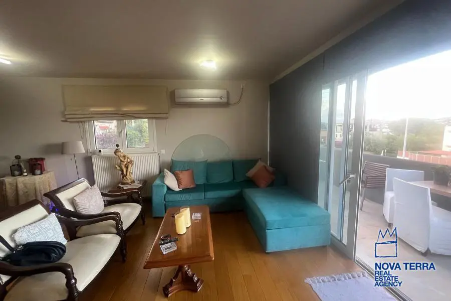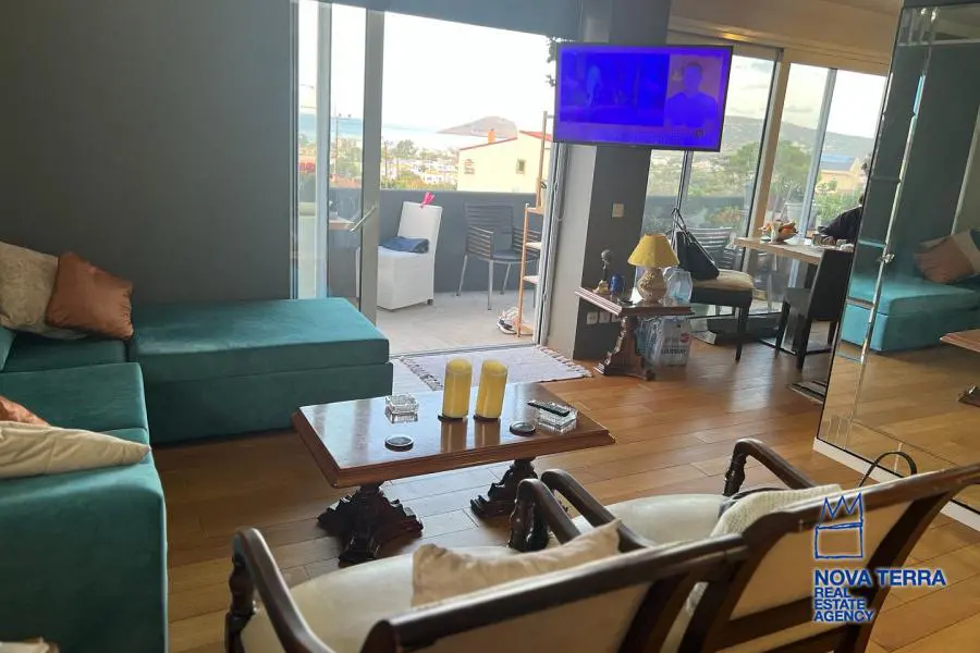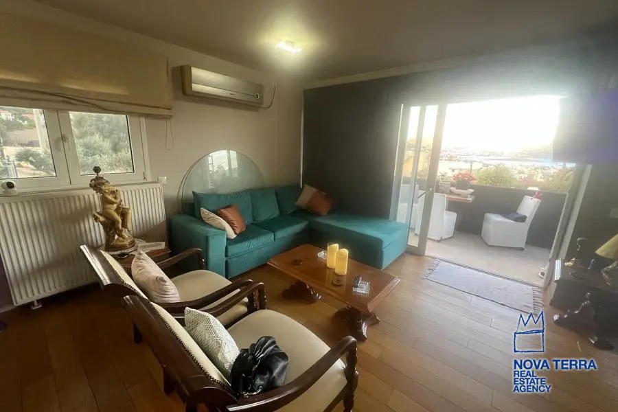 For Sale: Apartment in Porto Rafti with Seaview, 60 sq.m, 1 bedroom, built in 2022. Features include balcony, bath, kitchen, living room, wooden flooring, air conditioning, autonomous heating system, access road, aluminum panels, boiler, double-glazing, luxury design, security door, solar heating. Pets allowed. Energy class: Β. Property ID: 52746. Visit www.nova-terra.gr for more information.