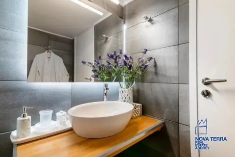 VARKIZA - VARKIZA, Apartment,, Sale, 52 sq.m, year built 1978, renovated in 2020, 1 rooms, 2nd, View: Seaview, Various Characteristics: Balcony, Bath, Escalator, Garden, Kitchen, Living room, Refurbished, Flooring: Tile, Heating: Air Conditioning, Access road, Aluminium panels, Bright, Double-glazing, From Side to Side, Luxury, Night charge, Painted, Residential area, Screens, Security Door, Tents, In perfect condition: Pets allowed: Parking area: Parking, Energy class: D. property ID: 53030, www.nova-terra.gr