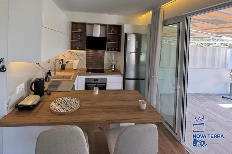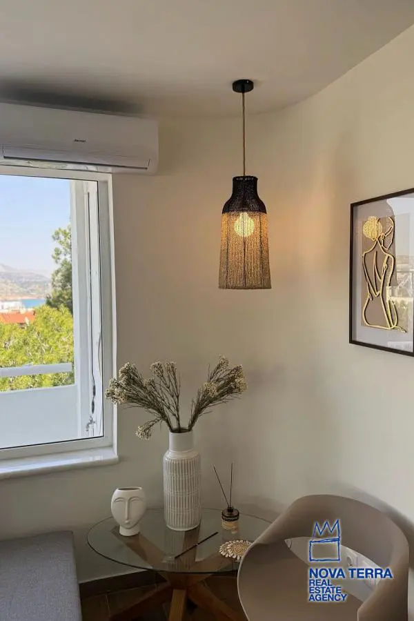 VARKIZA - VARKIZA, Penthouse,, Sale, 64 sq.m, year built 1980, renovated in 2025, 2 rooms, 4th, View: Seaview, Unobstracted view, Various Characteristics: Balcony, Bath, Escalator, Kitchen, Living room, Penthouse, Refurbished, Flooring: Murble, Heating: Air Conditioning, Autonomous Heat oil, Access road, Aluminium panels, Bright, Corner Block, Double-glazing, Electric Roller Windows, Facade, From Side to Side, Luxury, pets allowed, Satellite TV, Screens, Security Alarm, Security Door, Tents, Weekend Residence, In perfect condition: Pets allowed: Satellite dish: For investment: Energy class: B+. property ID: 42750, www.nova-terra.gr