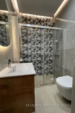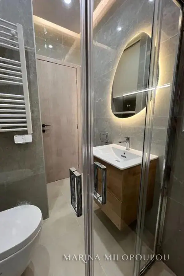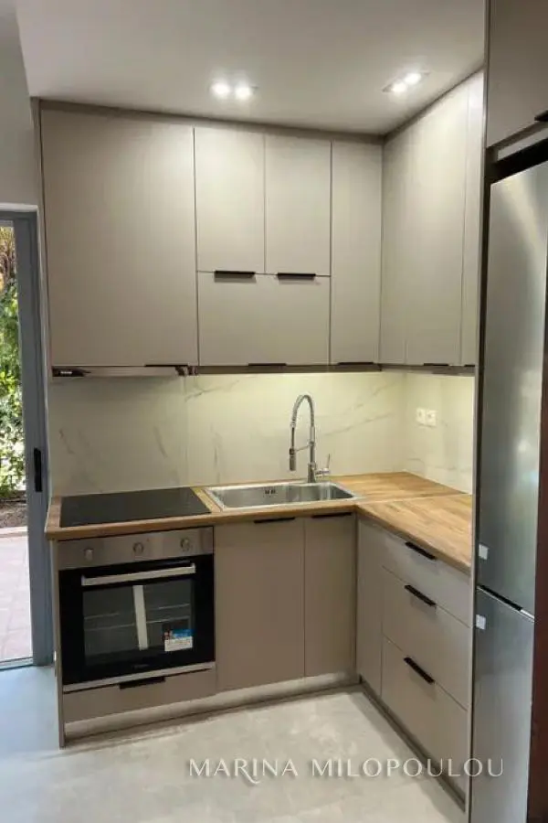 VOULA, Center, ground floor apartment, 47sqm, renovated in 2024. It consists of a single reception area - kitchen with electrical appliances, 1 bedroom with laminate flooring and 1 bathroom. It has a security door, hidden lighting, new frames, screens, 2 A/C for cooling/heating. It is part of a 5-storey building with public parking spaces in front of it, and with an entrance from the beach avenue. Zone price €2800. Only 300m from pubiic sandy beach, 400m from the ceter, 900 m from Small Kavouri (Apollon Hotel) organized beach and 19km from the intern airport.