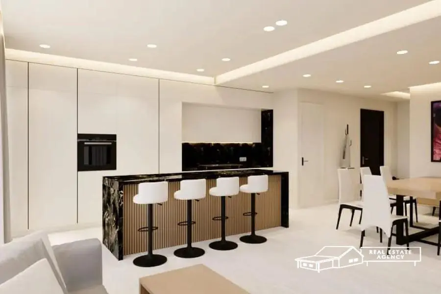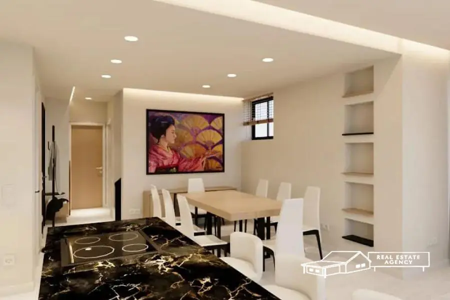 Voula, Ano, opposite a park, a key ready apartment with a total area of 176 sq.m. is available for sale, distributed over a ground floor and a 1st floor. The property includes a living room with an open plan kitchen, four master bedrooms, a playroom and a WC, while it has a 150 sq.m. garden, a swimming pool of 17 sqm and a sea view. In addition, it has aluminum frames with double glazing, an underground parking space with a power supply for an electric car, a storage room, autonomous heating, elevator and a security door. The location on the map is indicative. For more info: +30 6932 746491, website: www.merryland.com.gr, Email: [email protected], id: 15491