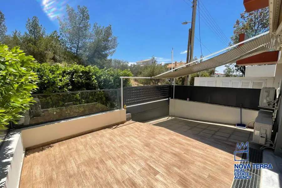 VOULA - KALYMNIOTIKA, Apartment,, Sale, 83 sq.m, year built 2011, 2 rooms, Ground Floor, Various Characteristics: Balcony, Bath, Escalator, Fire Place, Garden, Kitchen, Living room, Store Room, Flooring: Tile, Heating: Air Conditioning, Heating pump, Αutonomous oil heating, Access road, Aluminium panels, Bright, Double-glazing, Electric Roller Windows, Facade, From Side to Side, Luxury, Minimal, Painted, Residential area, Security Alarm, Security Door, Solar Heating, Tents, In perfect condition: : : Parking area: Garage (2), Energy class: Β. property ID: 50659, www.nova-terra.gr