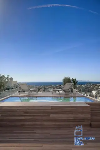 VOULA - KALYMNIOTIKA, Duplex / Triplex Apartment,, Sale, 183 sq.m, on a plot of 400 sq.m, year built 2023, 4 rooms, Ground Floor, 1st, Various Characteristics: Balcony, Bath (4), Fire Place, Garden, Kitchen, Living room, Store Room, Swimming Pool, Toilet, Master Bedrooms: 4 Master Bedrooms, Flooring: Wooden floor, Heating: Fan coil, Floor heating, Access road, Aluminium panels, Bright, Double-glazing, Electric Roller Windows, Facade, From Side to Side, Luxury, Minimal, Newly built, Painted, pets allowed, Residential area, Satellite TV, Screens, Security Door, Solar Heating, Weekend Residence, In perfect condition: Pets allowed: Satellite dish: For investment: Parking area: Garage (7), Energy class: Α+. property ID: 51327, www.nova-terra.gr