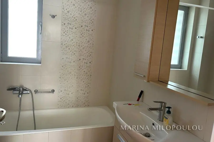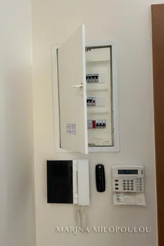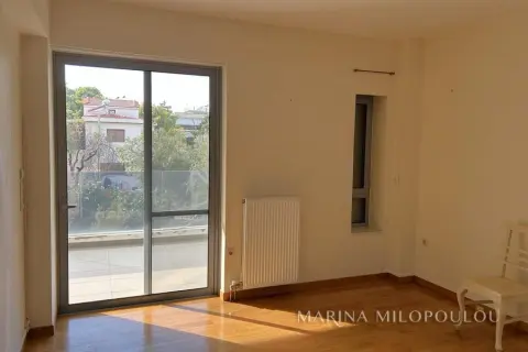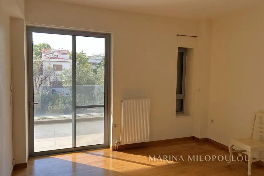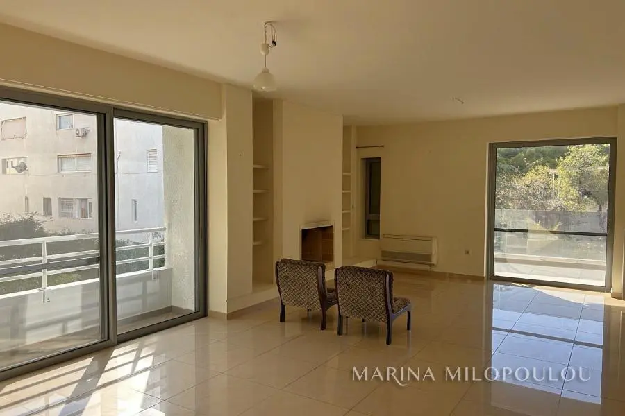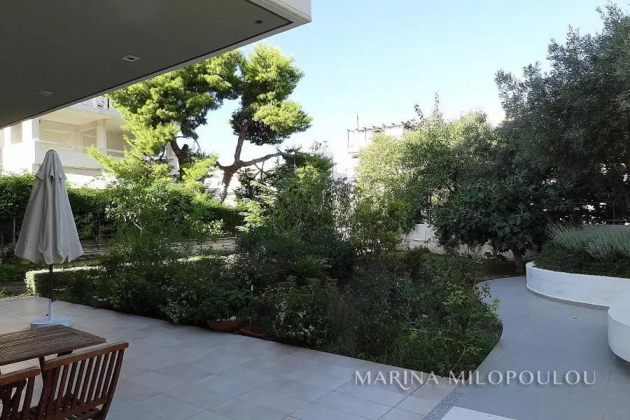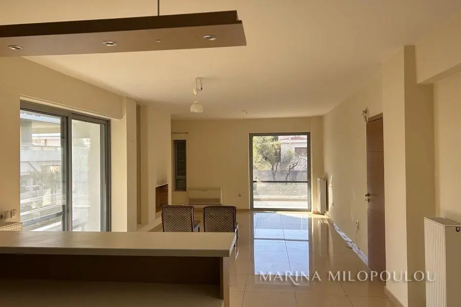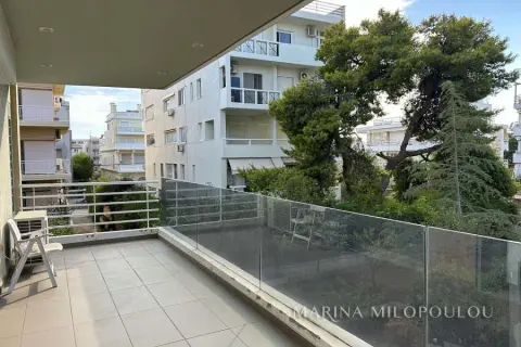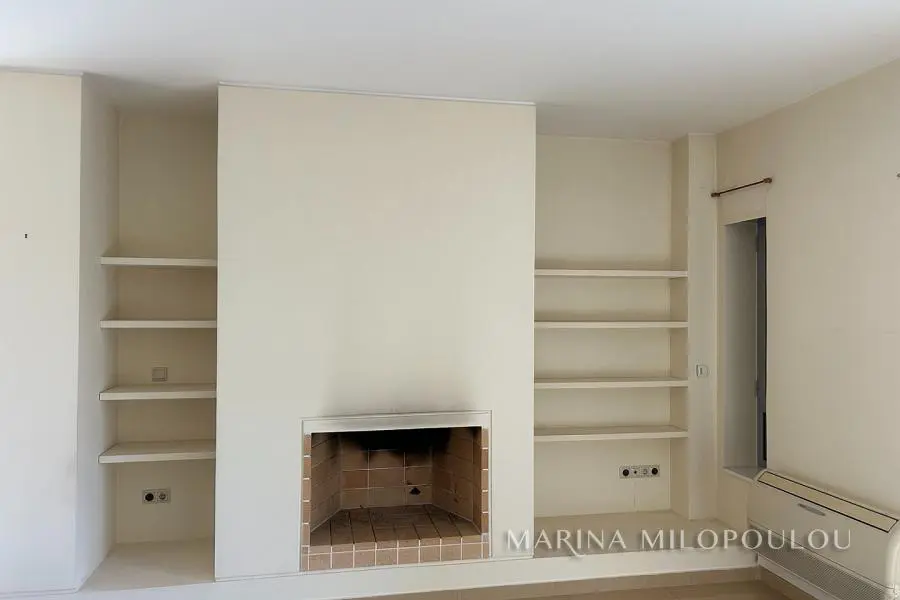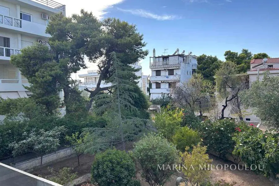 VOULA-Kato, near the center, Apartment, 1st floor, 100sqm, at the back of the building, overlooking the garden, west orientation. It consists of an open-plan reception-dining room, living room with fireplace and exit to a large terrace overlooking the garden, open-plan kitchen, with oven-hob, 2 bedrooms, 1 bathroom and 1 wc. It has a security door, autonomous natural gas heating, fireplace, 1 a/c, double glazing, electric roller shutters, solar water heater, oak floor in the bedrooms and tile in the rest of the house, alarm, basement storage room, 1 underground parking space. It is part of a 3-story building of 8 apartments. Zone price 2800€ Beautiful, quiet neighborhood with lots of greenery, 600m from the center of Voula, 1km from a sandy beach, 1.3km from the second beach of Voula, 4.2km from the new marina of Asteras.