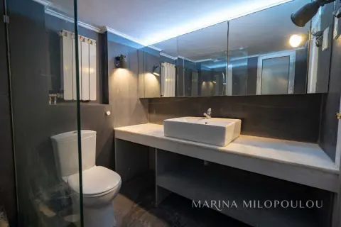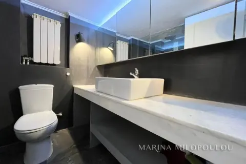 Voula, just a few meters from the Coastal Avenue and within very close proximity to Voula Square, a 3rd-floor apartment of 143 sq.m. is available, offering uninterrupted spectacular sea views of the Saronic Gulf from inside the residence. A 35 sq.m. front-facing terrace integrates seamlessly with the living area, creating an expansive combined space that gives the impression of being right above the sea and offers spectacular sunsets. The layout includes a spacious reception area with a fireplace, a separate kitchen, 3 bedrooms —all with access to balconies— 1 bathroom, and 1 wc. The property features, autonpmus natural gas heating, double-glazed windows, a security door, tiled flooring in the main areas, and Iroko wood flooring in the bedrooms, all of which open onto a large north-facing veranda overlooking landscaped gardens, a basement parking space, a 4 sqm storage room, and elevator access to the basement. The apartment is part of a residential complex consisting of two 5-storey buildings and two detached houses. Zone price: €2,800. The location is exceptional: very close to Voula Square (250m) with restaurants - cafés and shops, close to a sandy public beach, 400 meters from the redevelopment area of Voula’s B’ Beach, 4 km from Glyfada’s shopping area, and 21 km from the intern. airport.